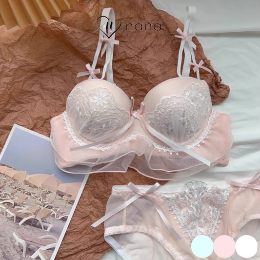 【10/24新作】ファンシーフェアリーブラレット& ショーツセット(全1色) 0207NA1024 | フリル レース ナイトブラ ナチュラル
