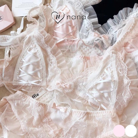 【8/22新作】ラブリーレースアップブラ&ショーツセット(全2色) 0208NA0824