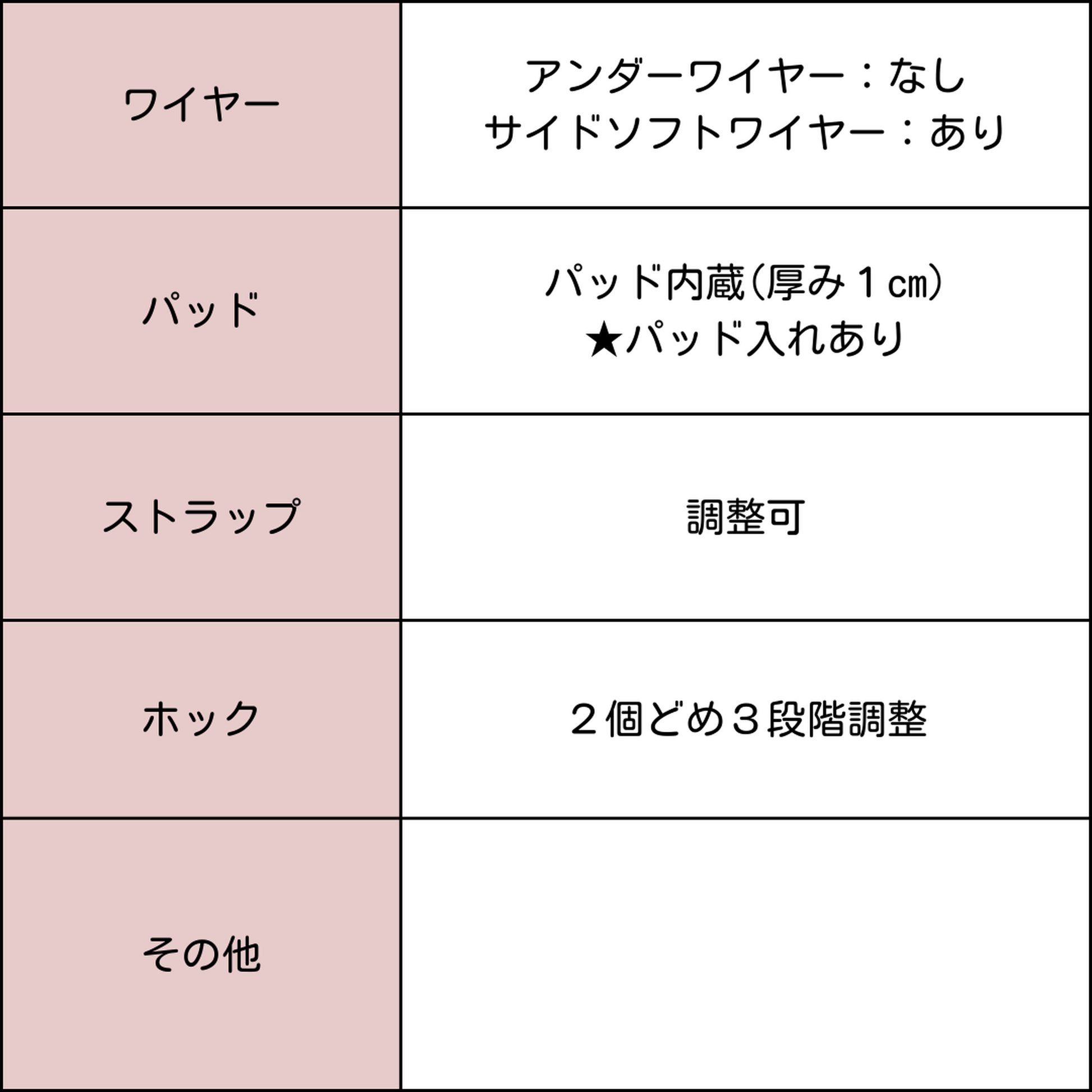 パット受けがあるので盛りたい方はパッドを入れていただけます。