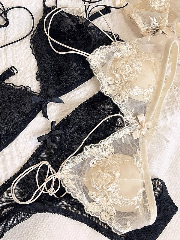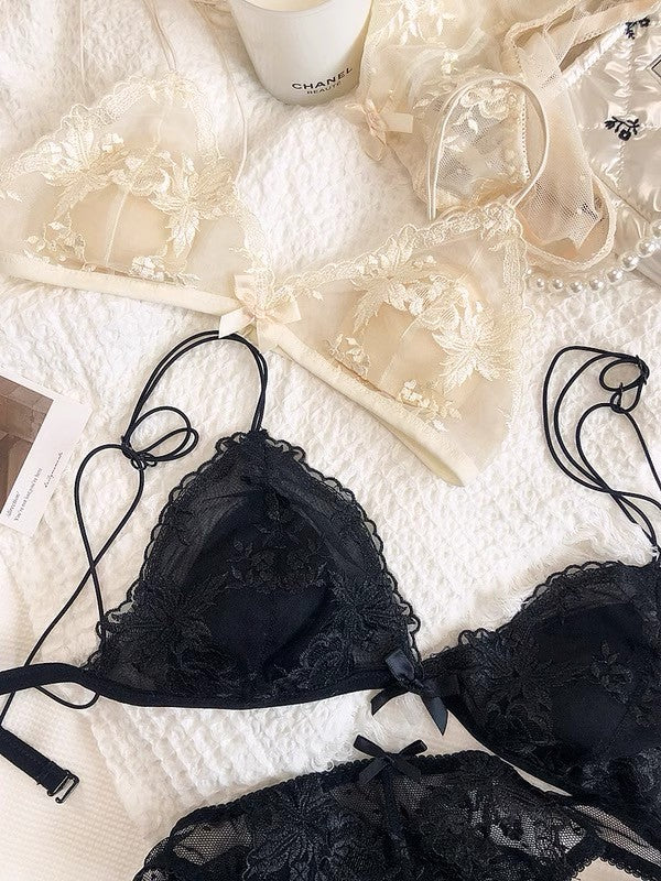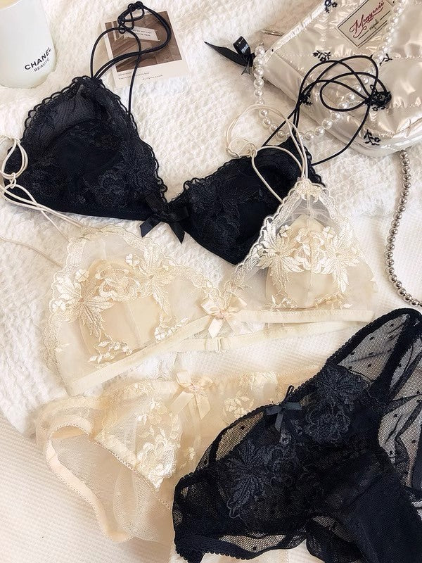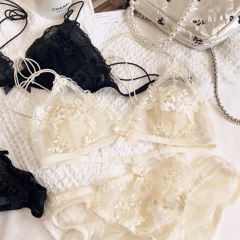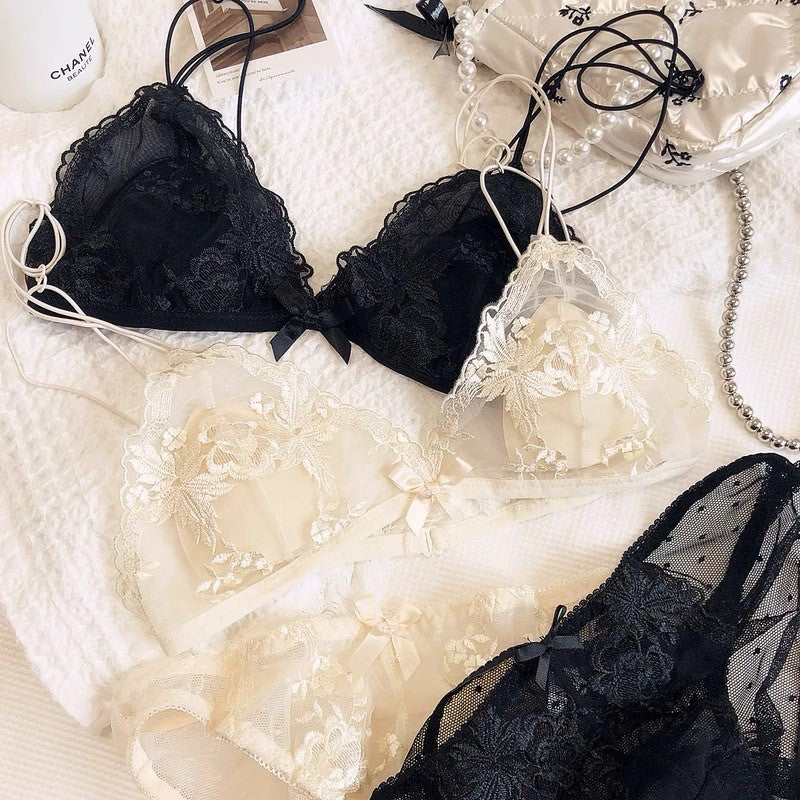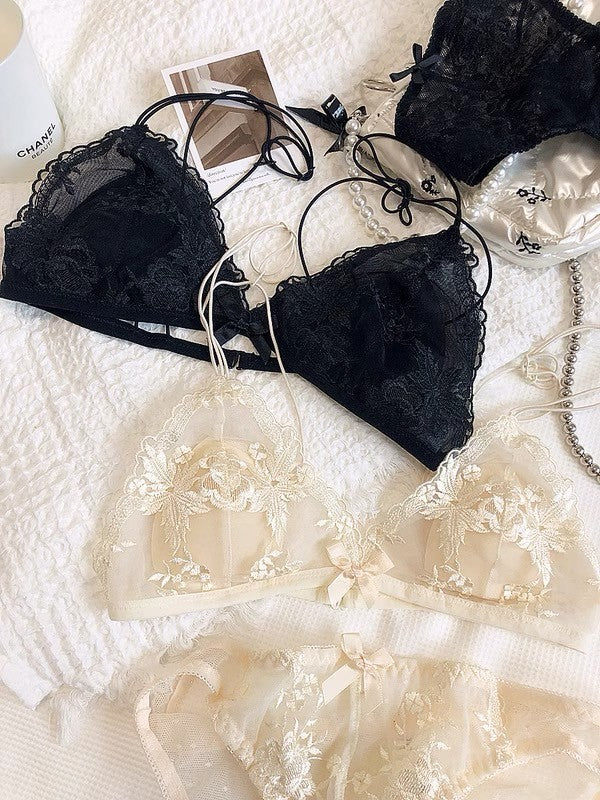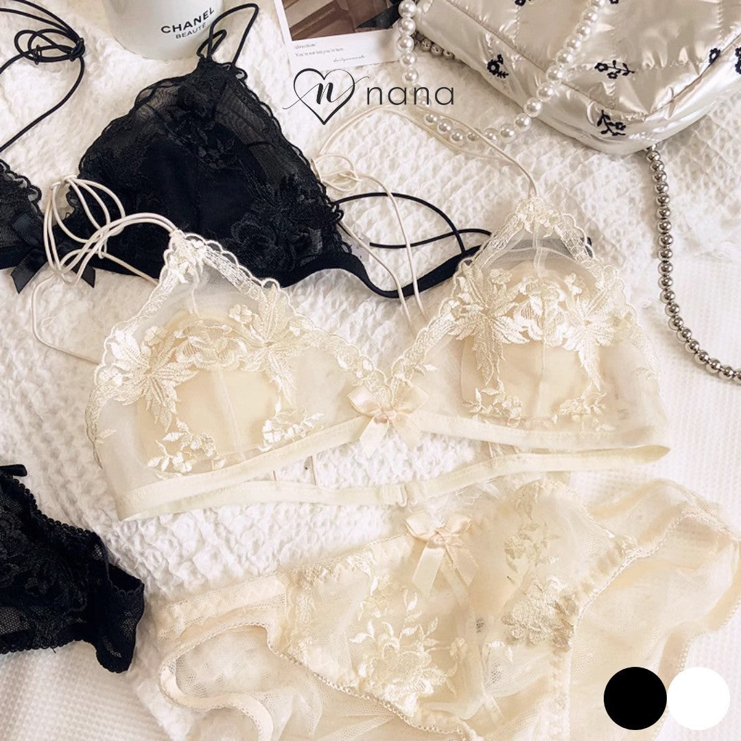 フェミニンレーシーブラレット&ショーツセット(全2色)0204NA1223