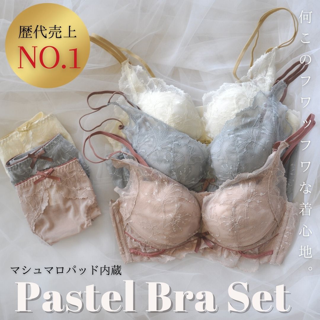 nana売上No.1!パステルフリルケーキブラを全カラーお届け3点セットです。