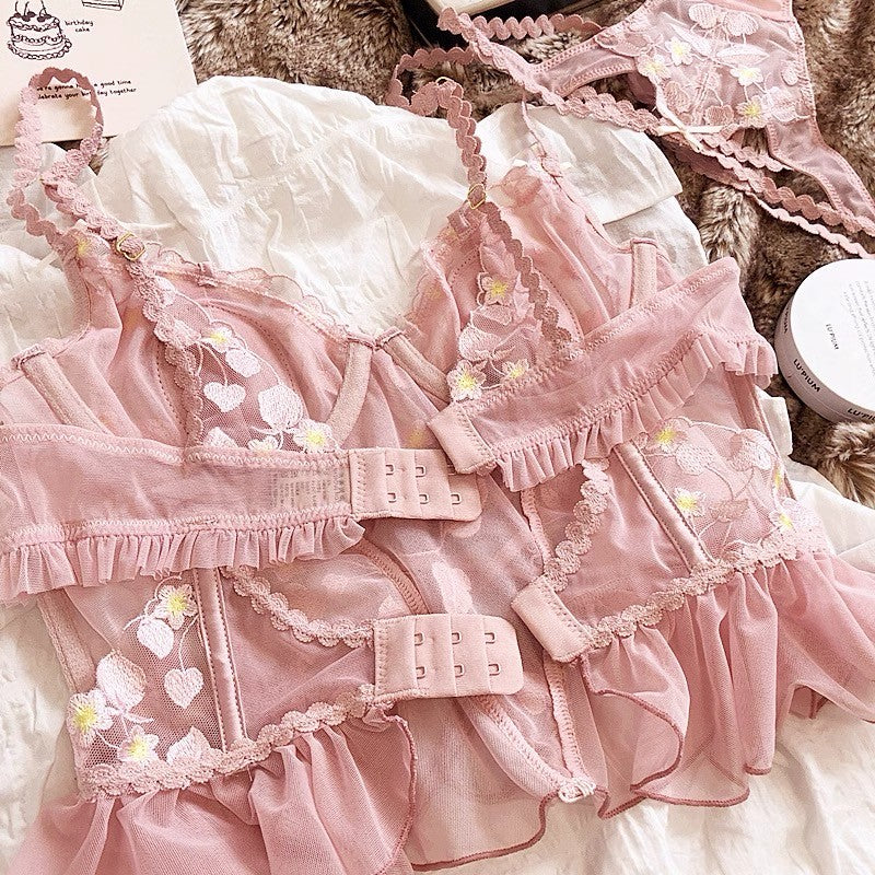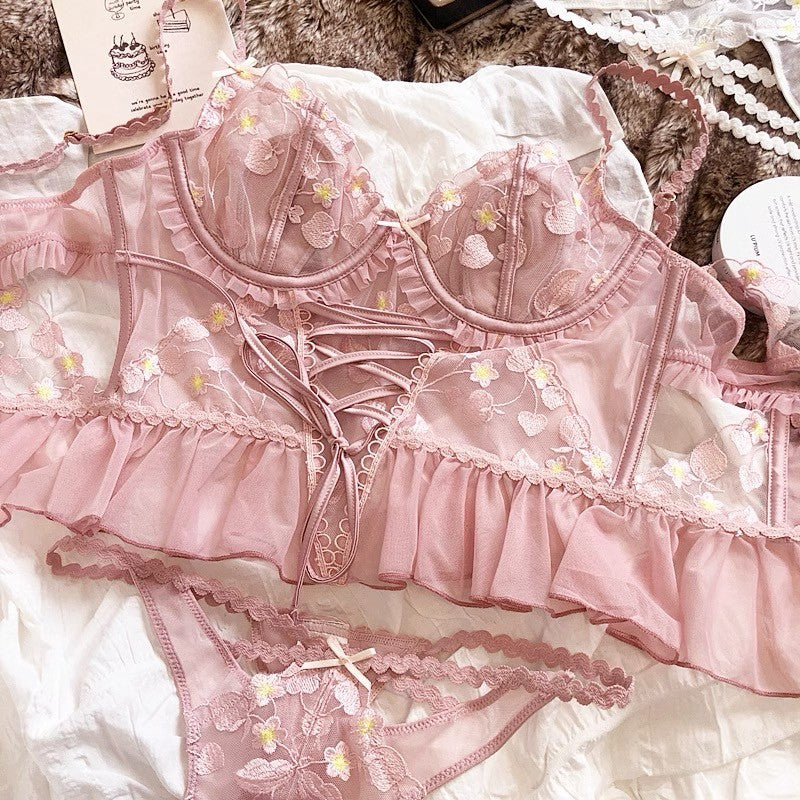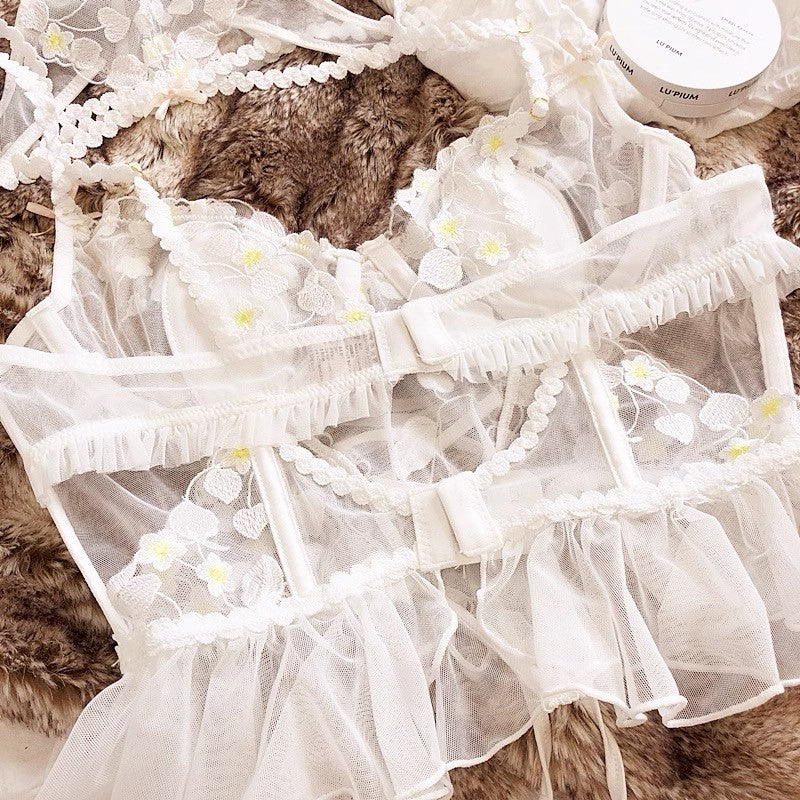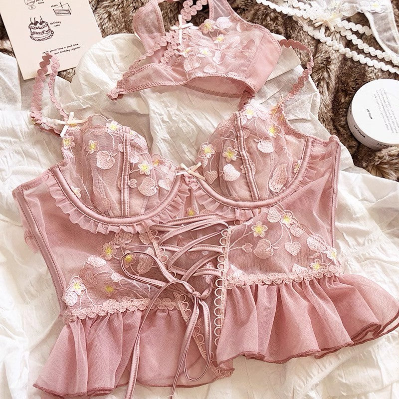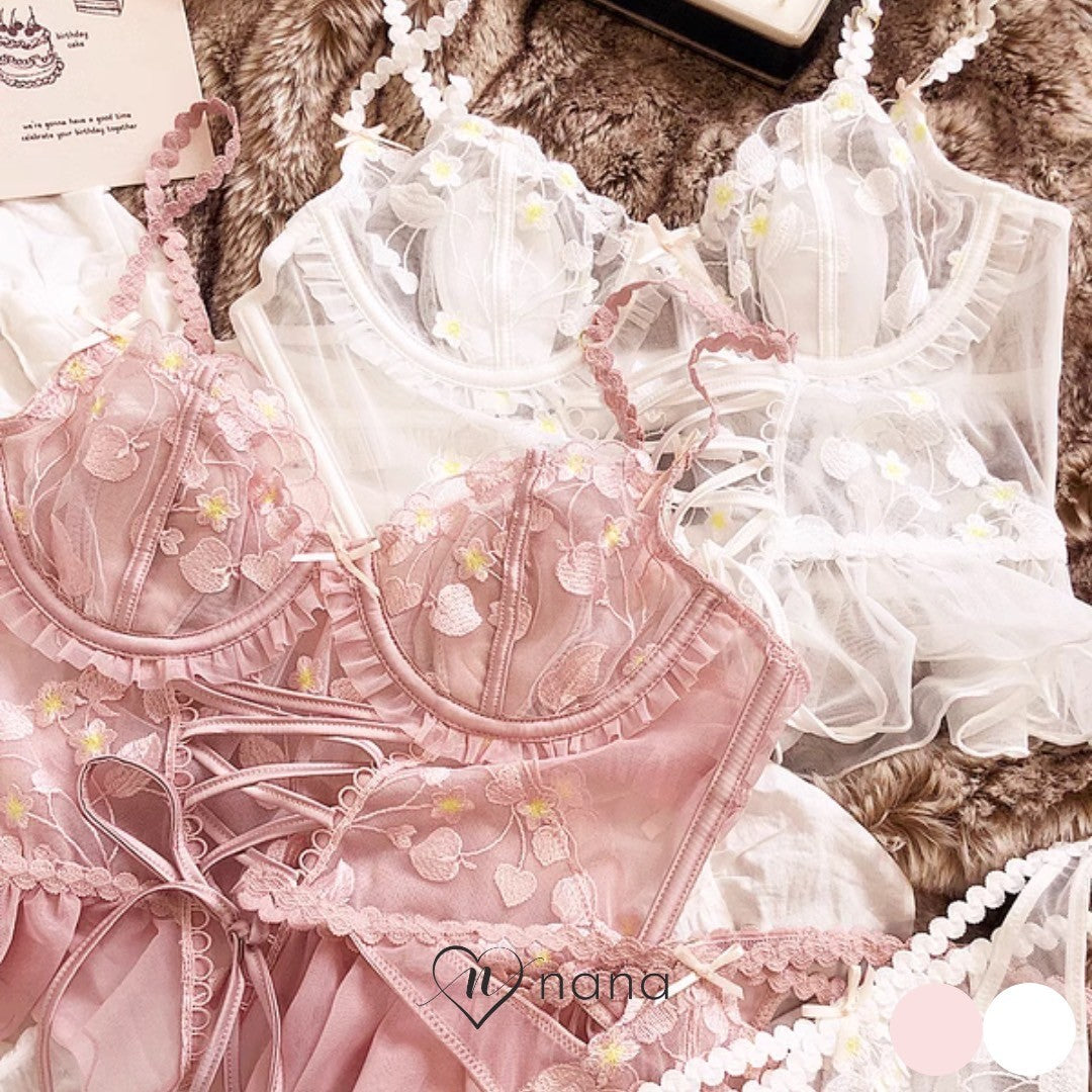 フラワーレースアップブラ&ショーツセット(全2色)0101NA1123