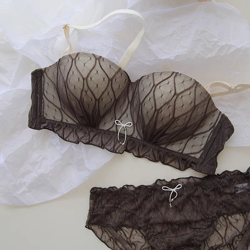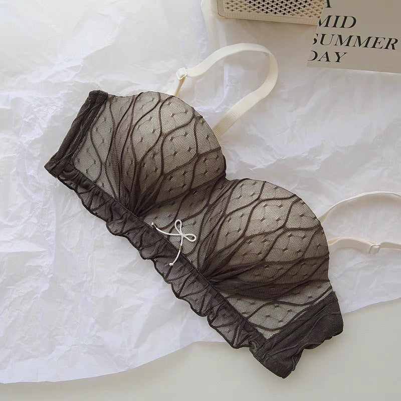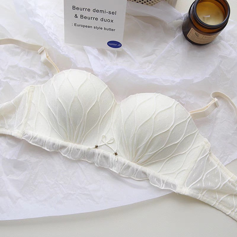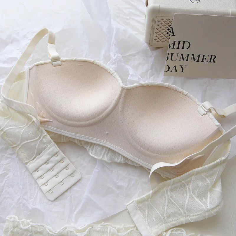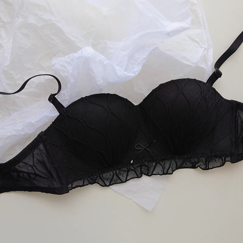 シンプルながらも繊細なレースやワンポイントのリボンが洗練されたデザイン♡内蔵されたしっかりパットでお胸をキュッと持ち上げてくれます。