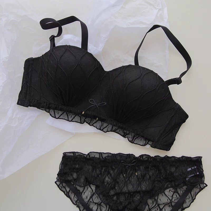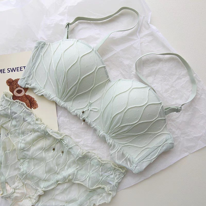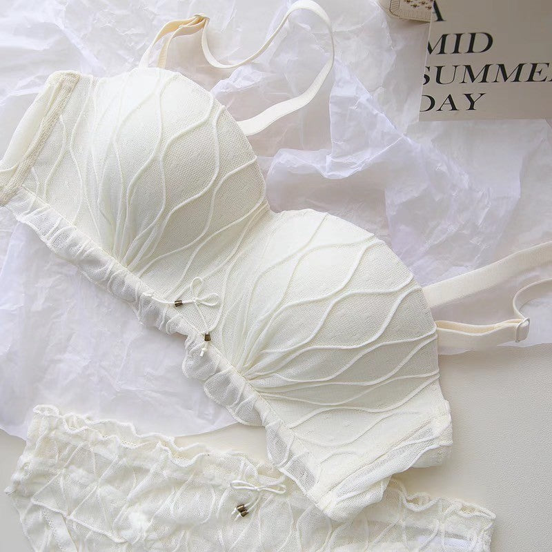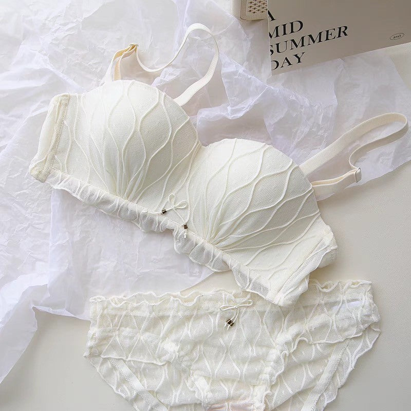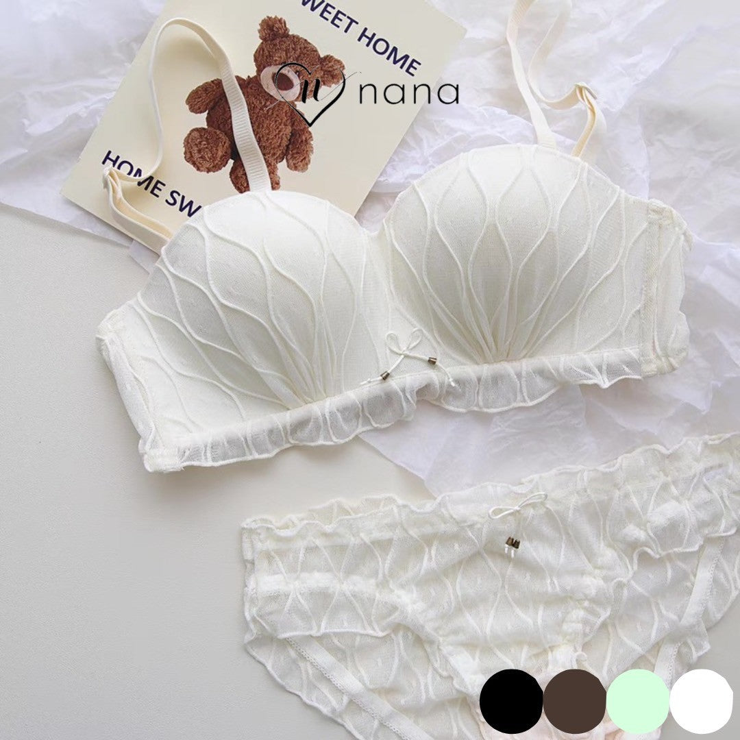 【11/7新作】ウェーブレースブラ&ショーツセット(全4色) 0101NA1124:盛れる レース パット厚め