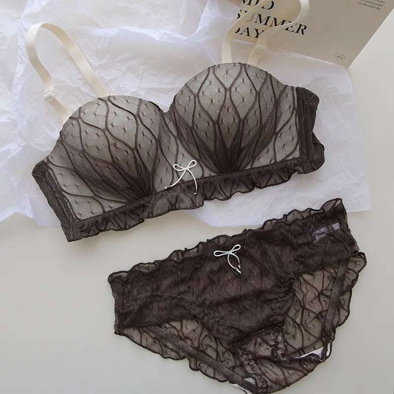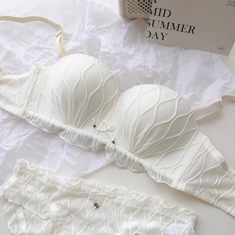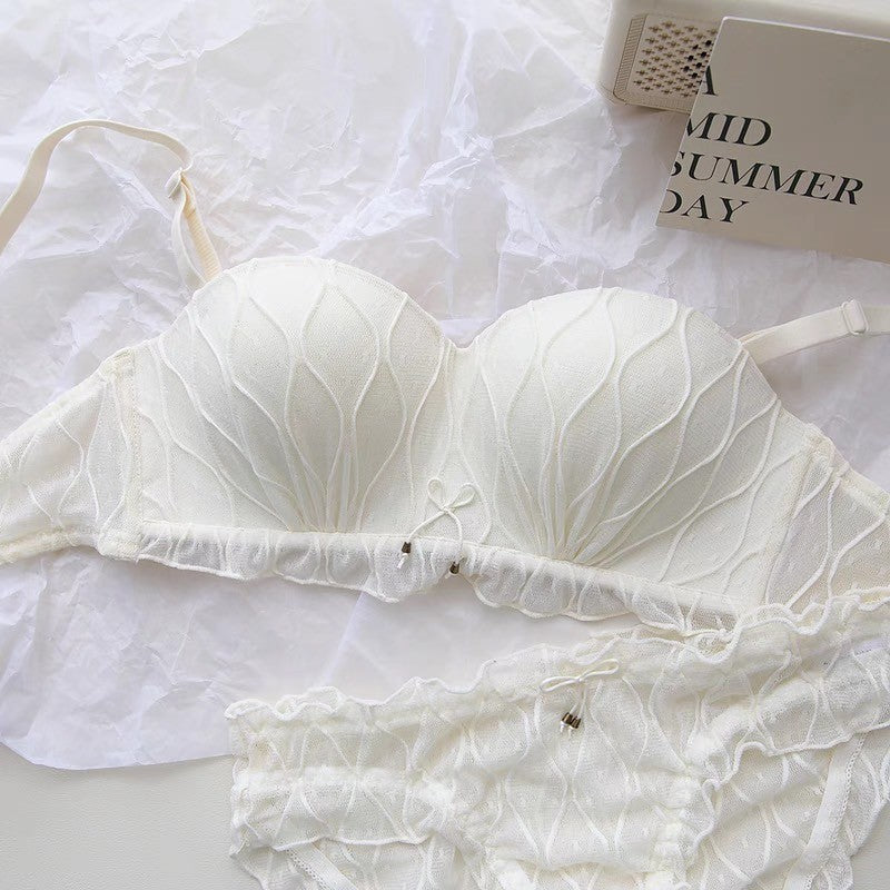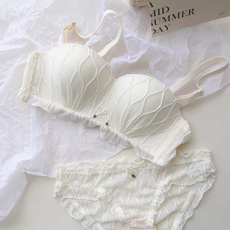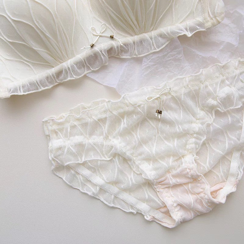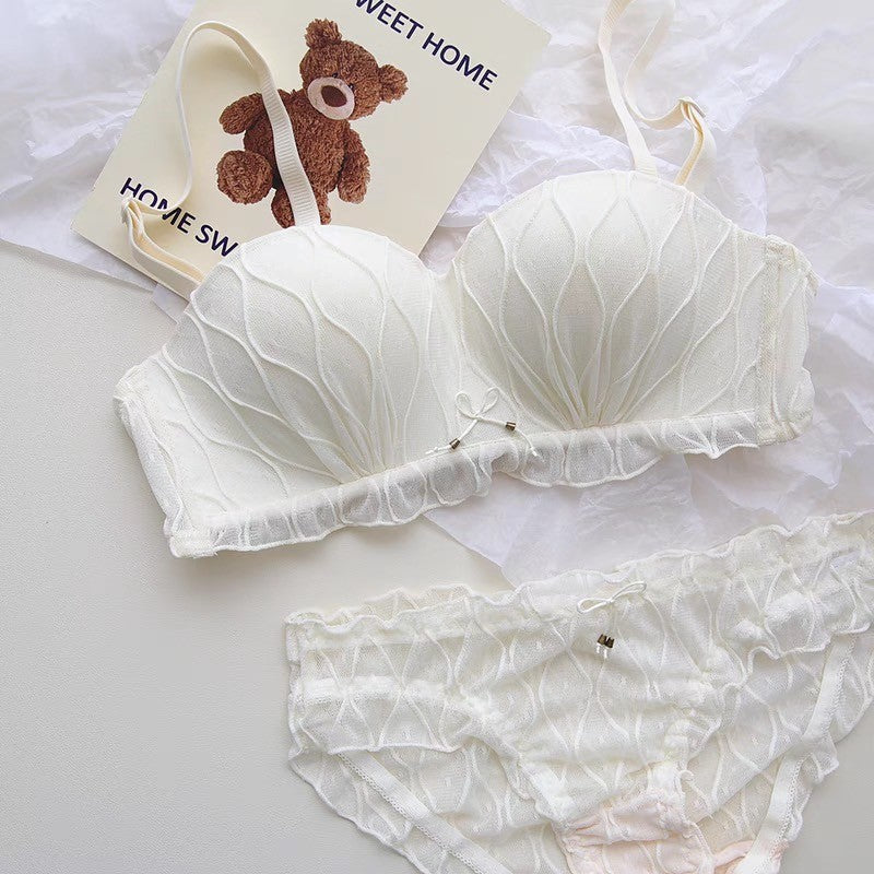 【11/7新作】ウェーブレースブラ&ショーツセット(全4色) 0101NA1124:盛れる レース パット厚め