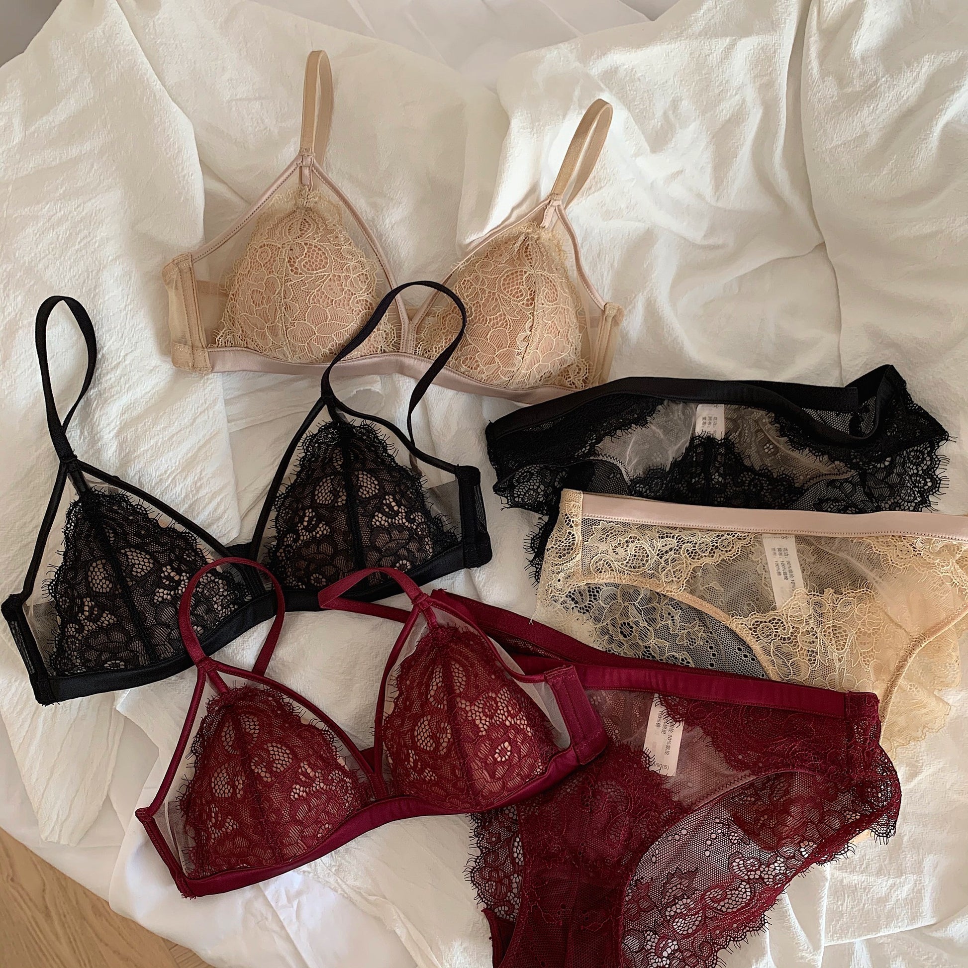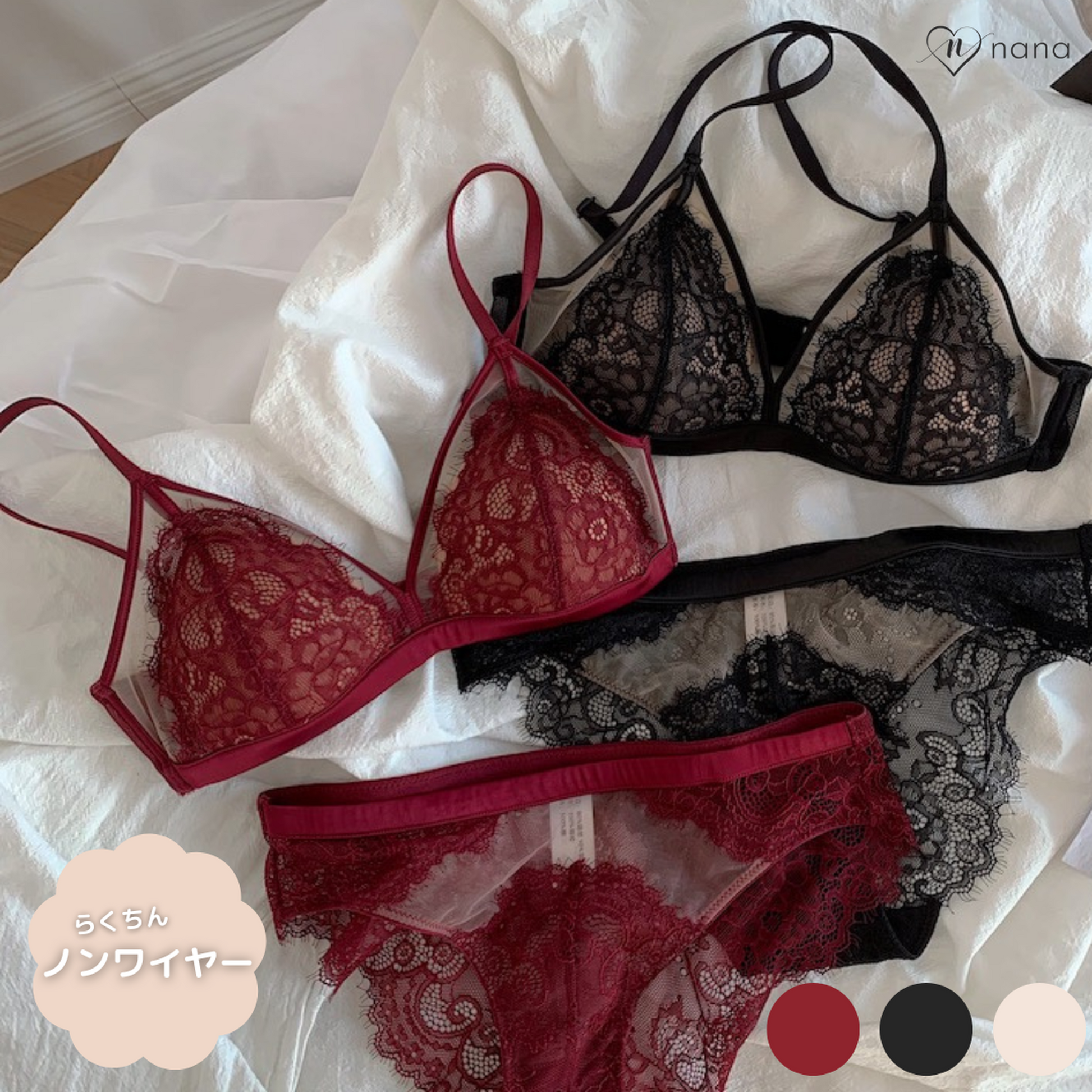 トライアングルレースブラ&ショーツセット(全3色)0121NA1020