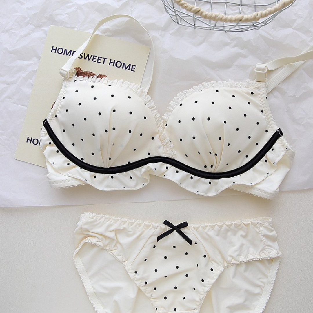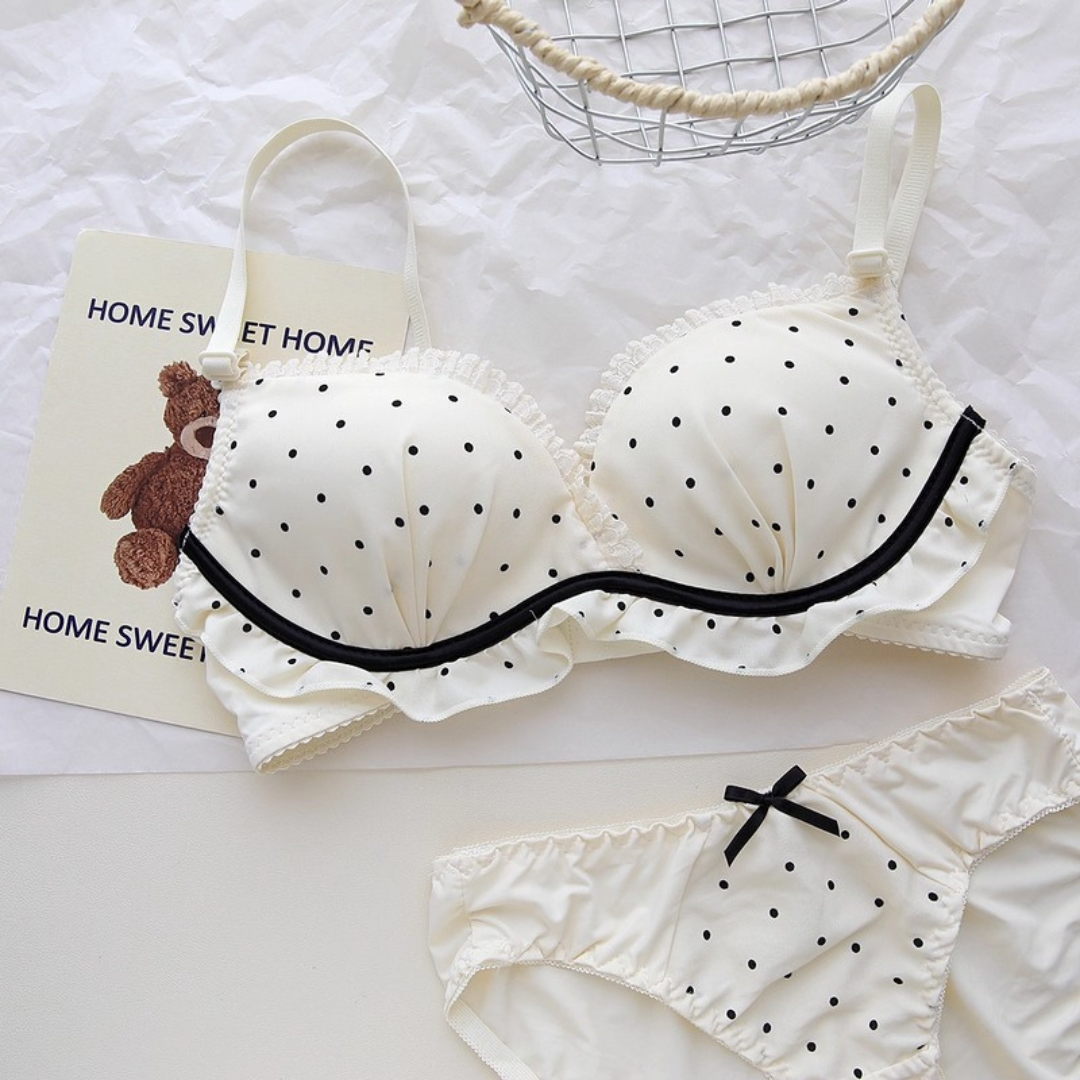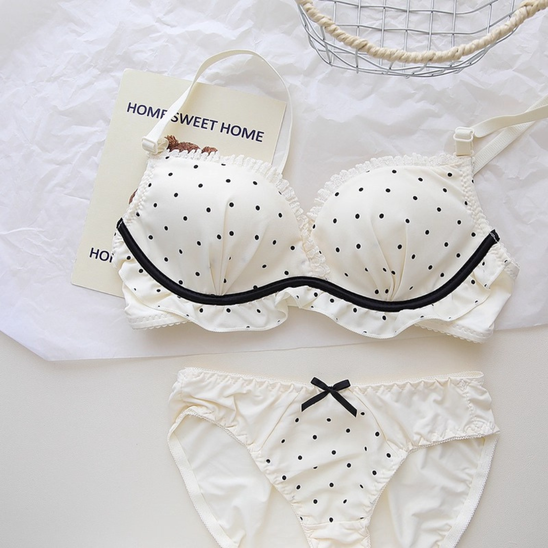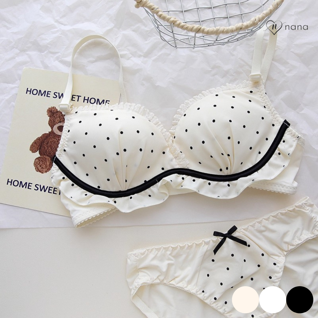 【10/23新作】スウィートドットフリルブラ&ショーツセット(全3色)0105NA1025:盛れる ストラップ取り外し可 ノンワイヤー