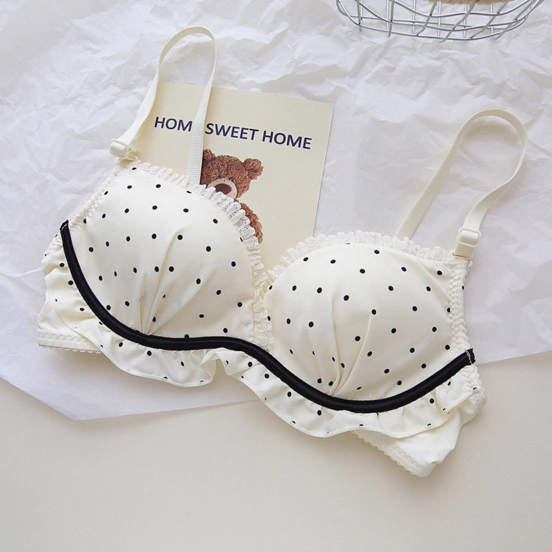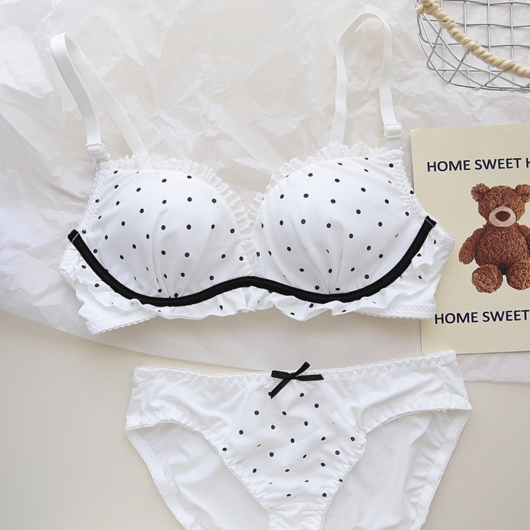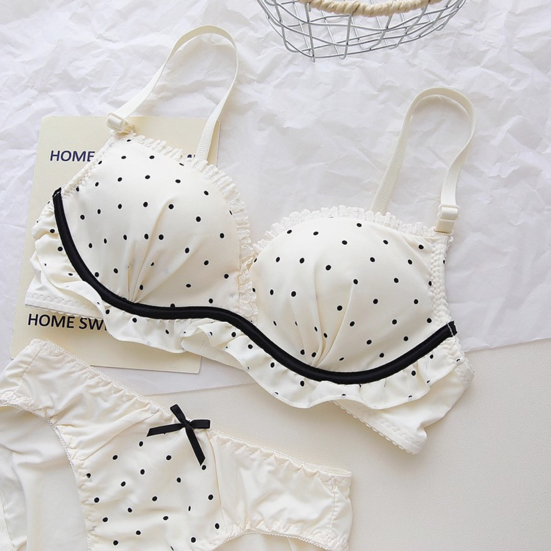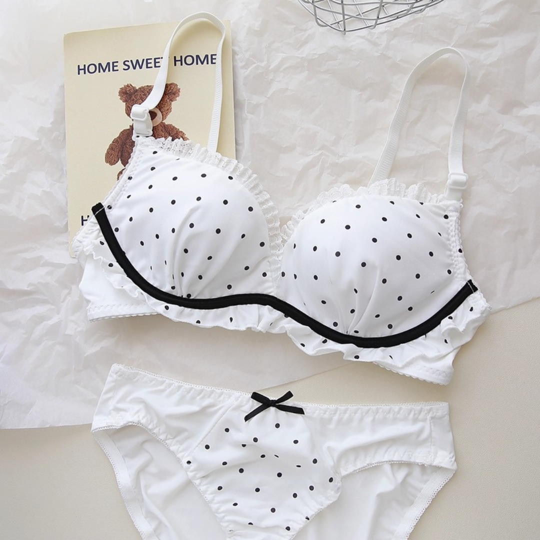 【10/23新作】スウィートドットフリルブラ&ショーツセット(全3色)0105NA1025:盛れる ストラップ取り外し可 ノンワイヤー