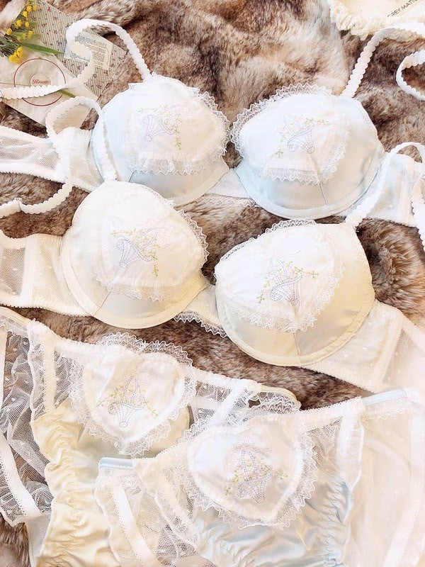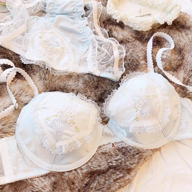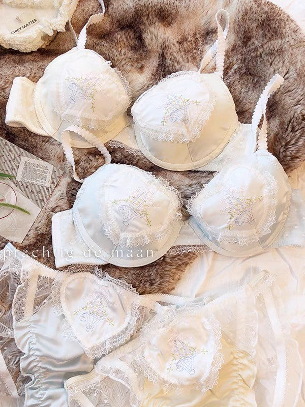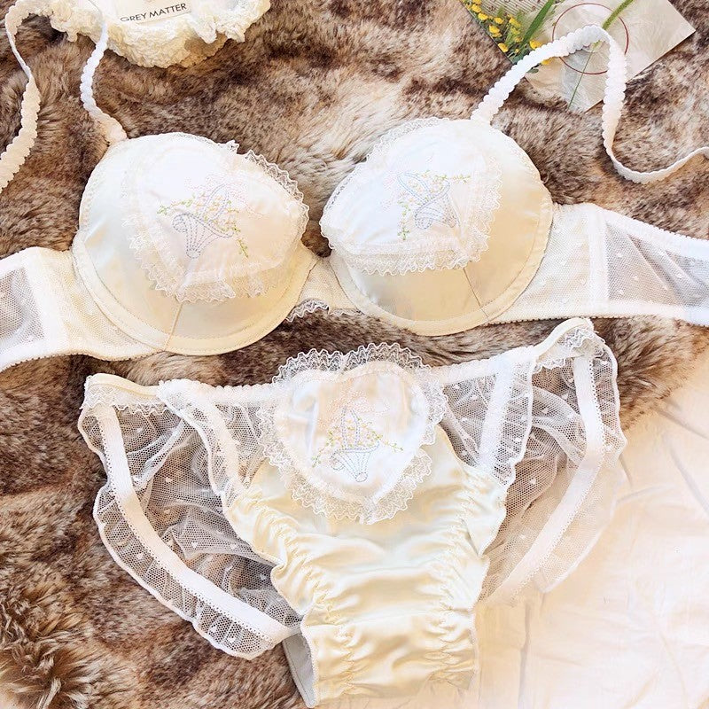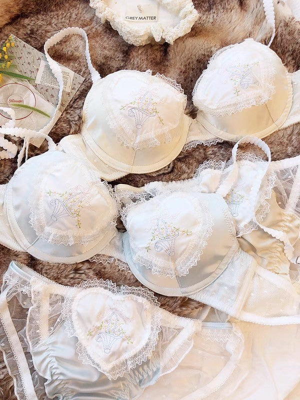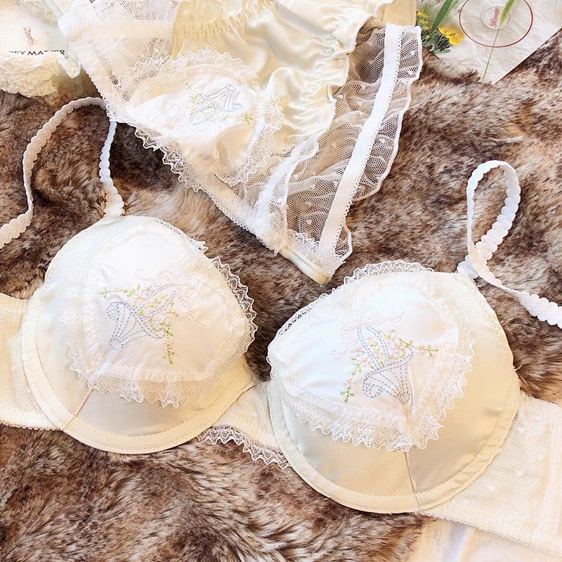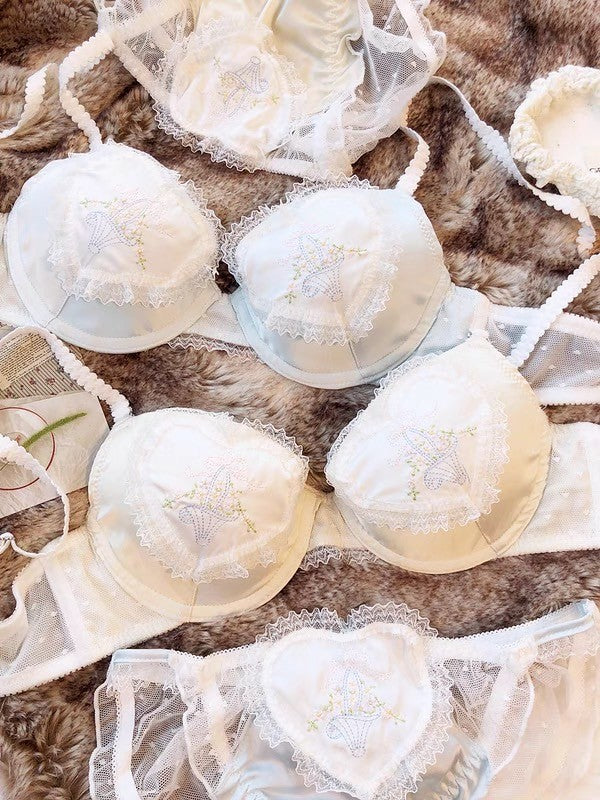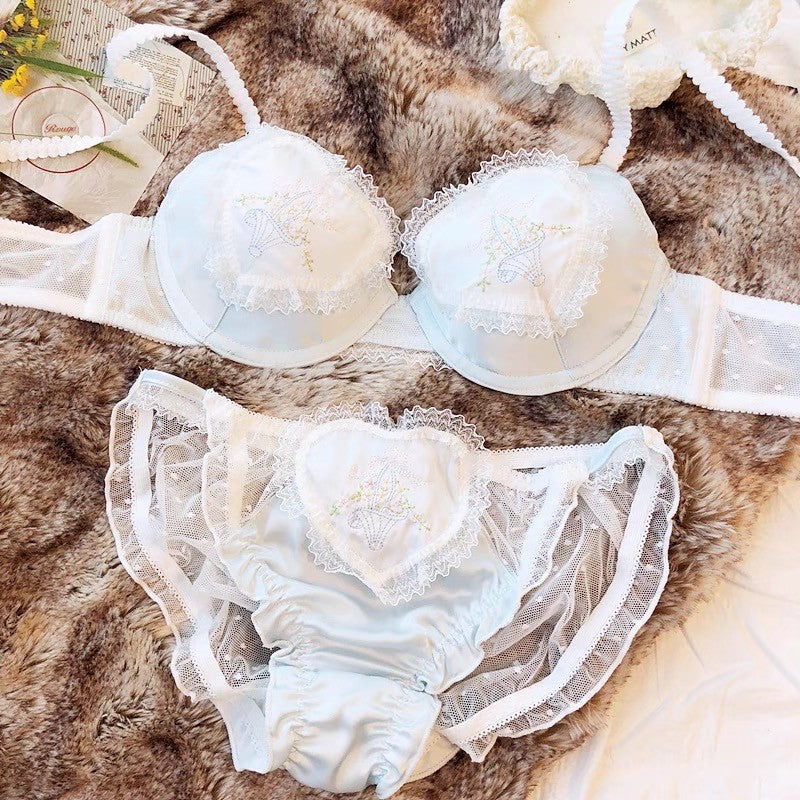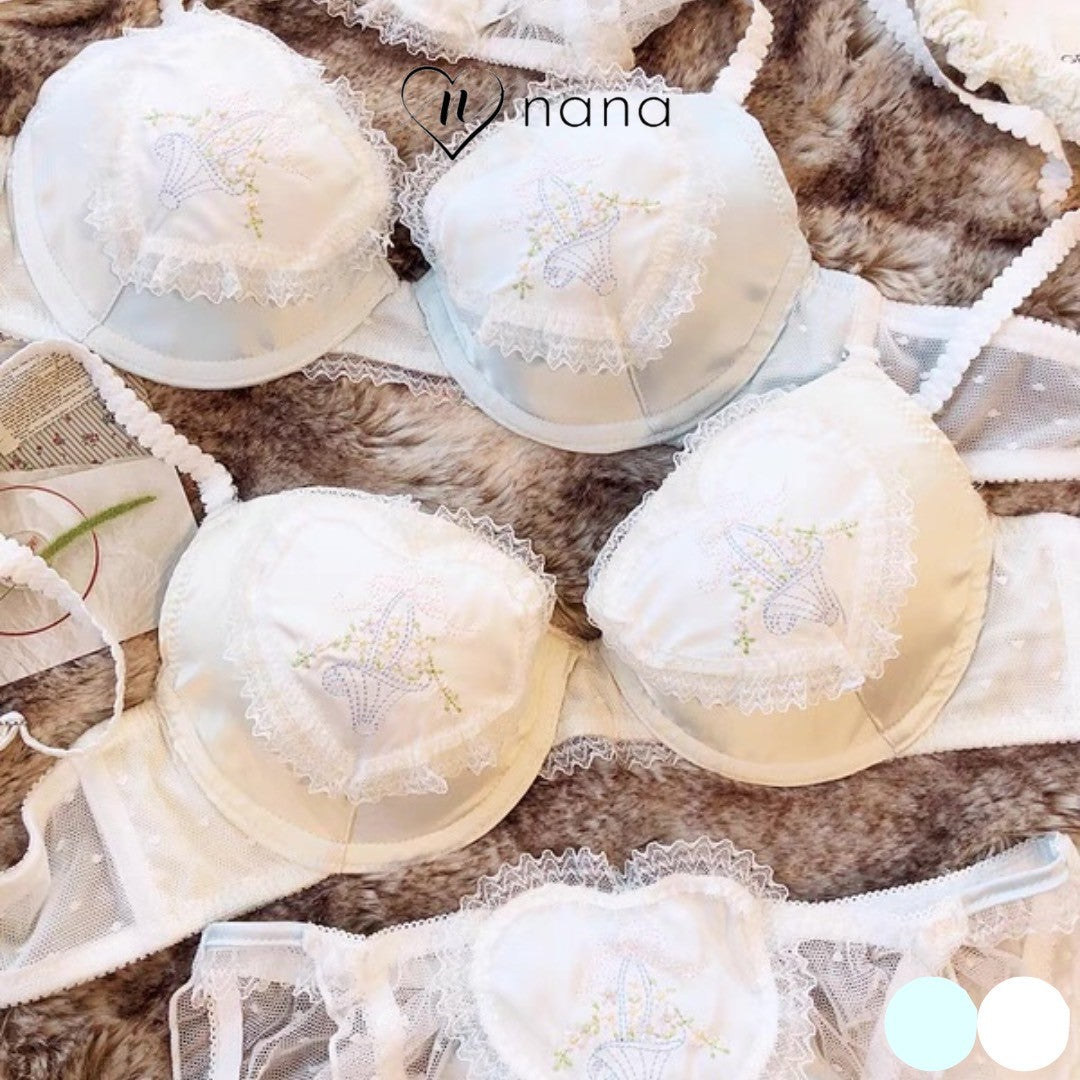 【11/7新作】ハート刺繍ブラ&ショーツセット(全2色) 0102NA1124:盛れる フリル 刺繍