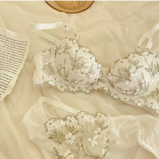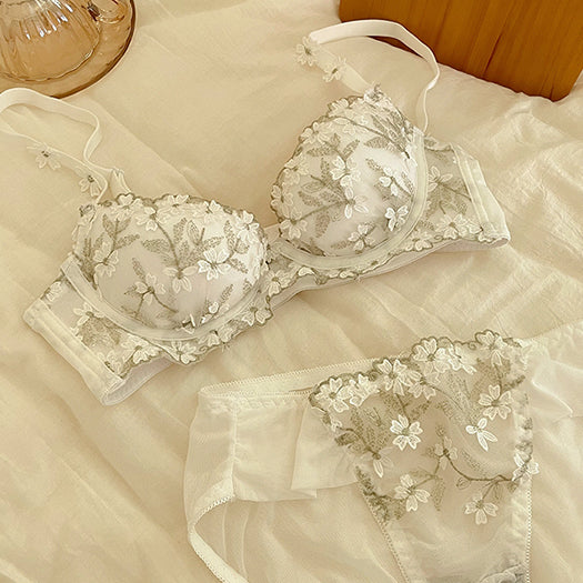 レース刺繍が施され、ショーツも総レースな高級感のあるランジェリーです。