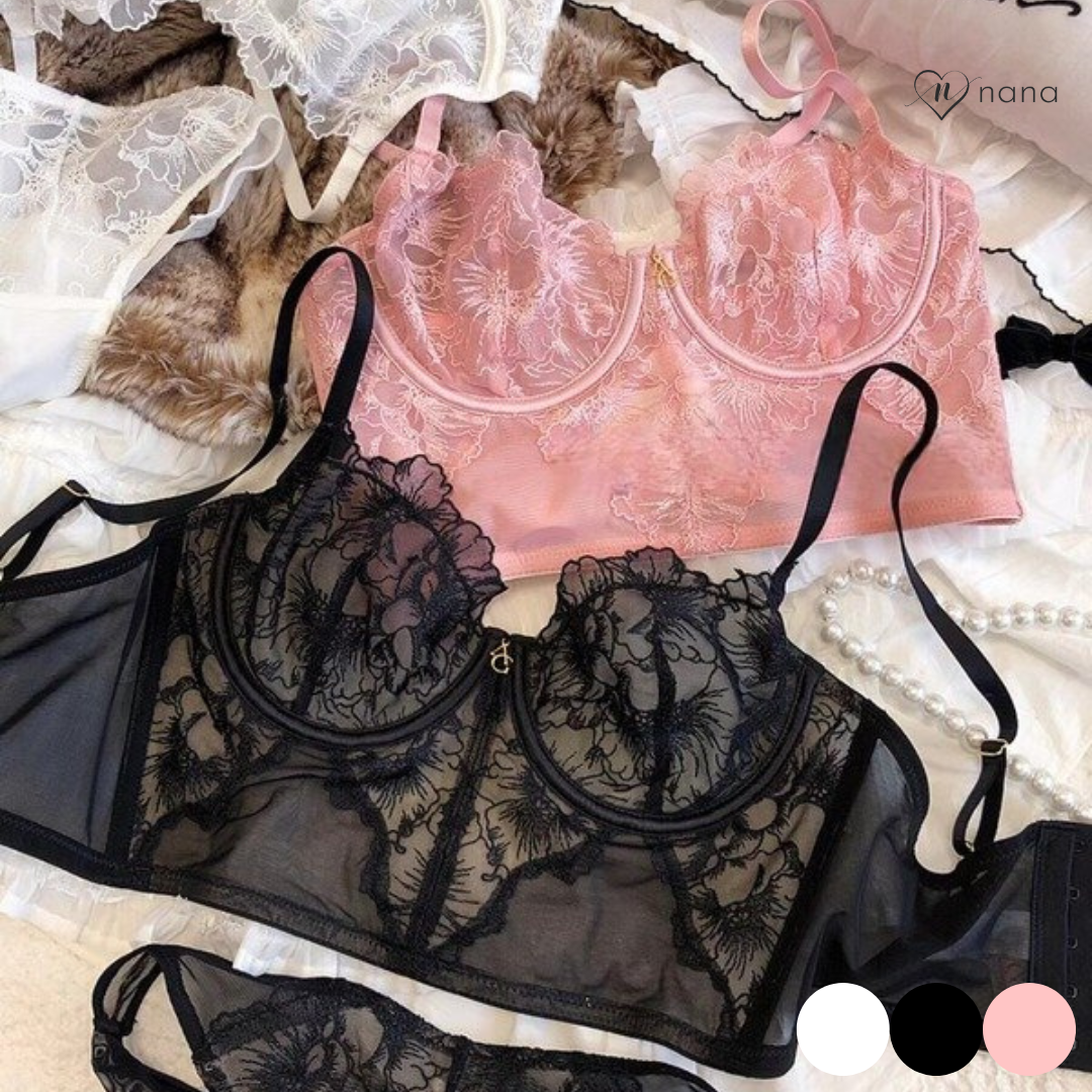 ロングラインブラ&ショーツセット(全3色)0104NA0425:上品 シースルー 背中カバー