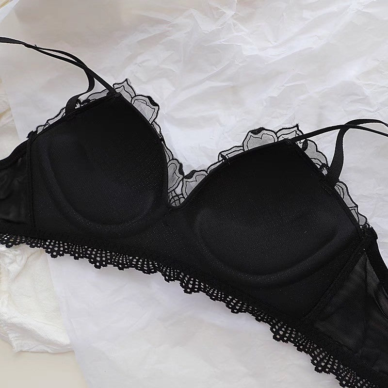 存在感のあるお花の刺繍が大人の魅了を引き立てます♡ パッド部分の構造が、内蔵下側厚めなつくりなのでキレイな谷間を作ってくれます。