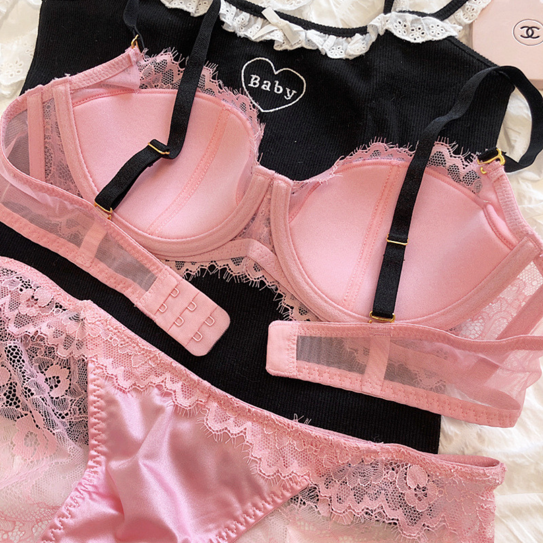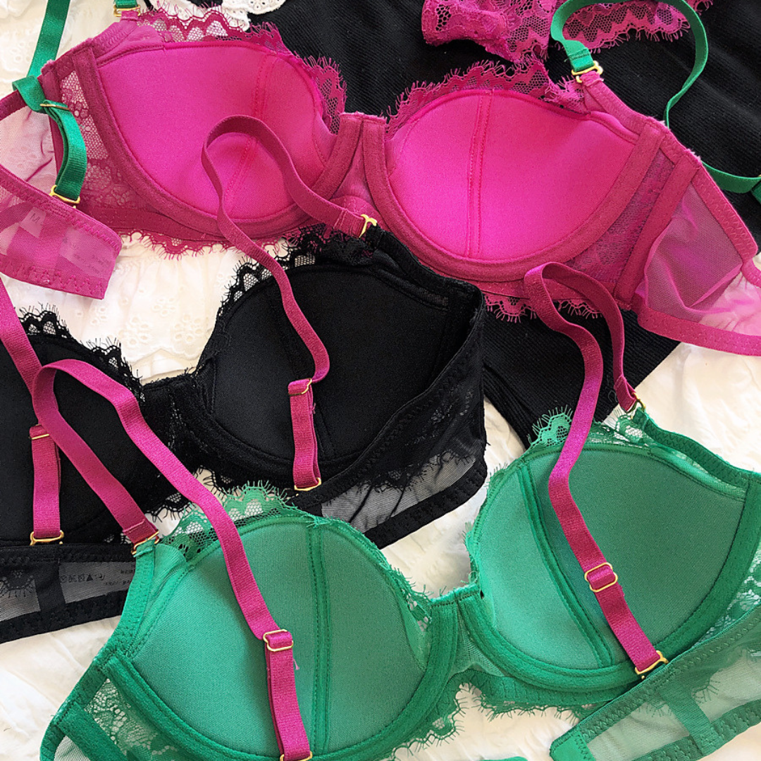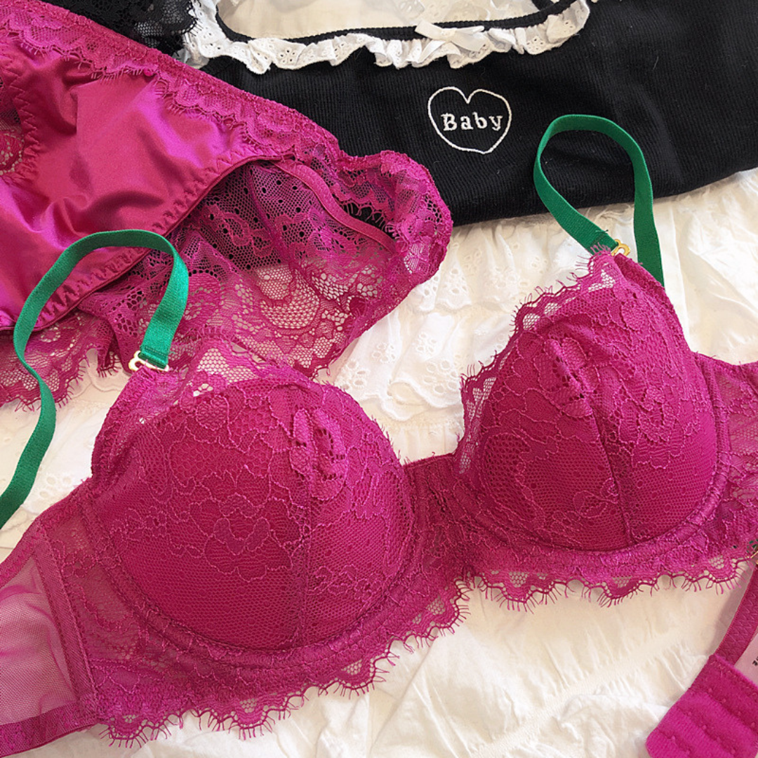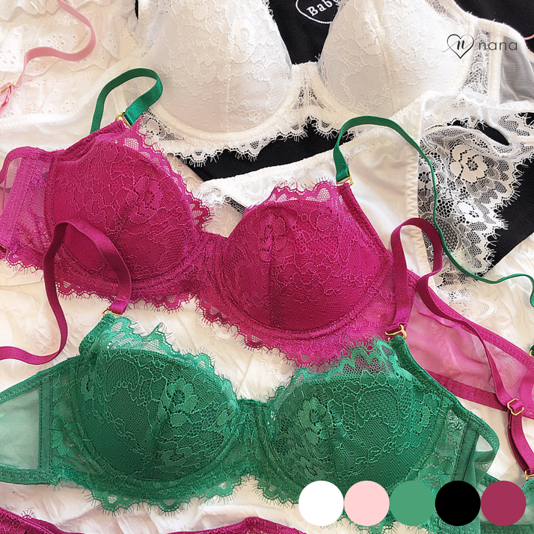 ドーパミンカラーフレンチレースブラ&ショーツセット(全5色)0102NA0525:カラバリ豊富 パッド入り カラフル