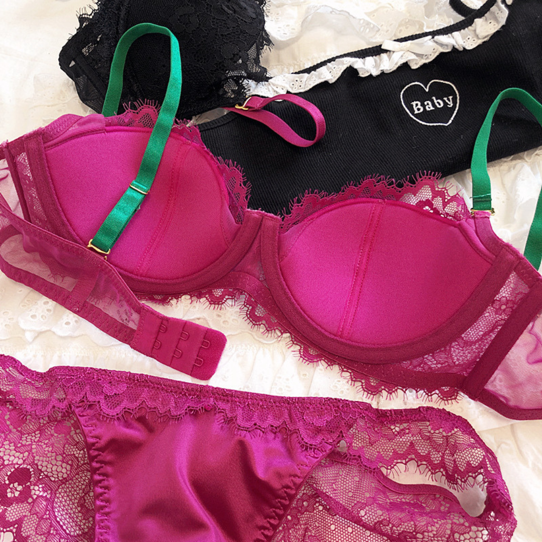 カラフルで気分まで明るくなるビタミンカラーのランジェリーセット。薄手の成型カップとノンインサートで、ナチュラルなバストラインを実現。普段使いはもちろん、特別な日の気分アップにもぴったりな1着です♡