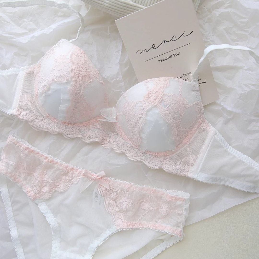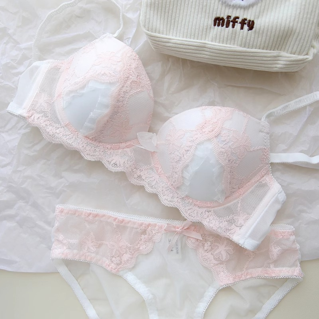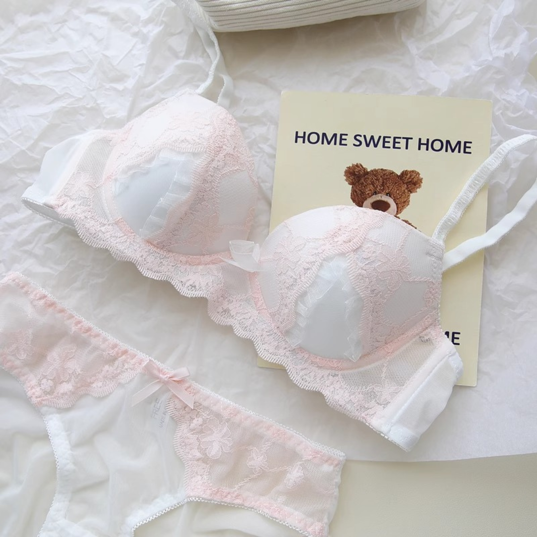 スウィートレースブラ&ショーツセット(全2色)0105NA0625:レース 通気性◎ 立体カップ