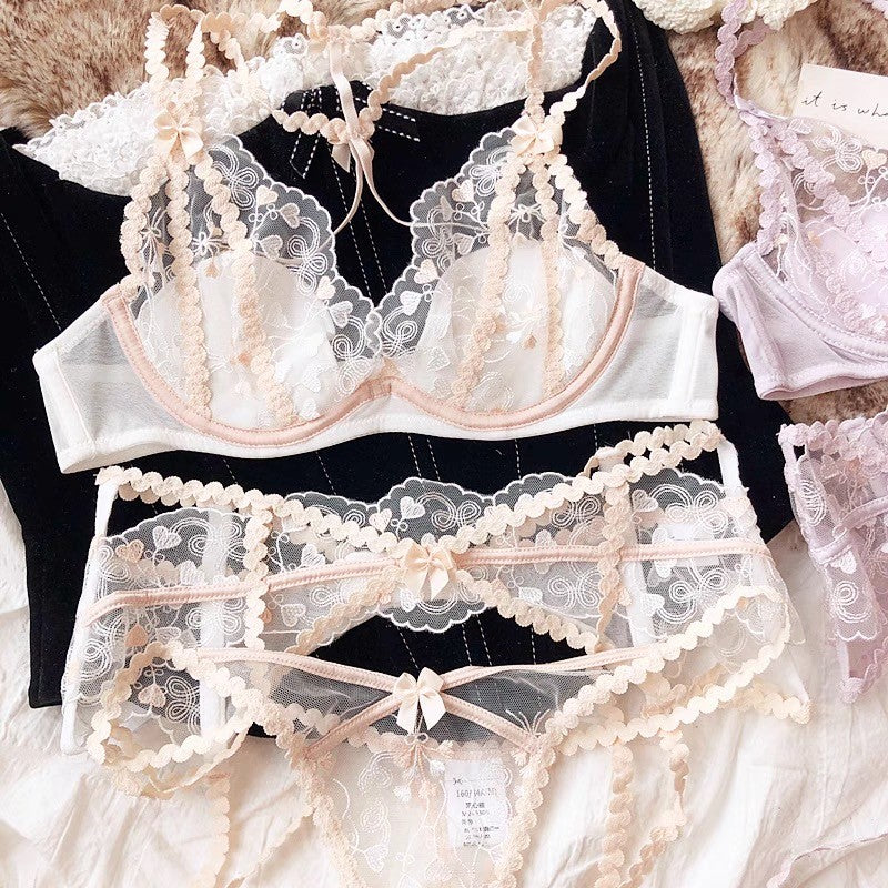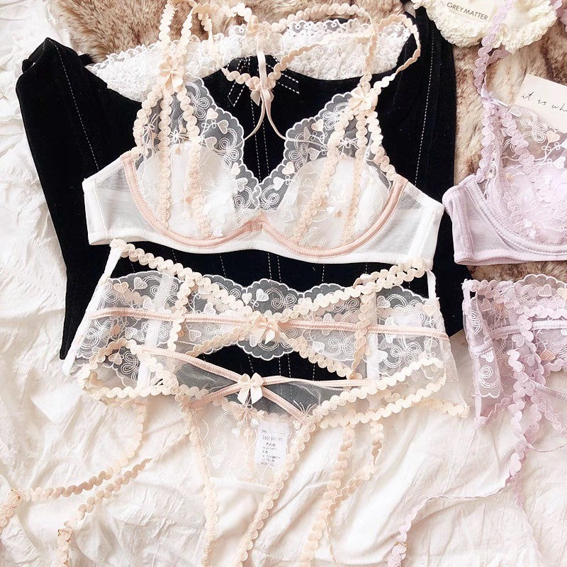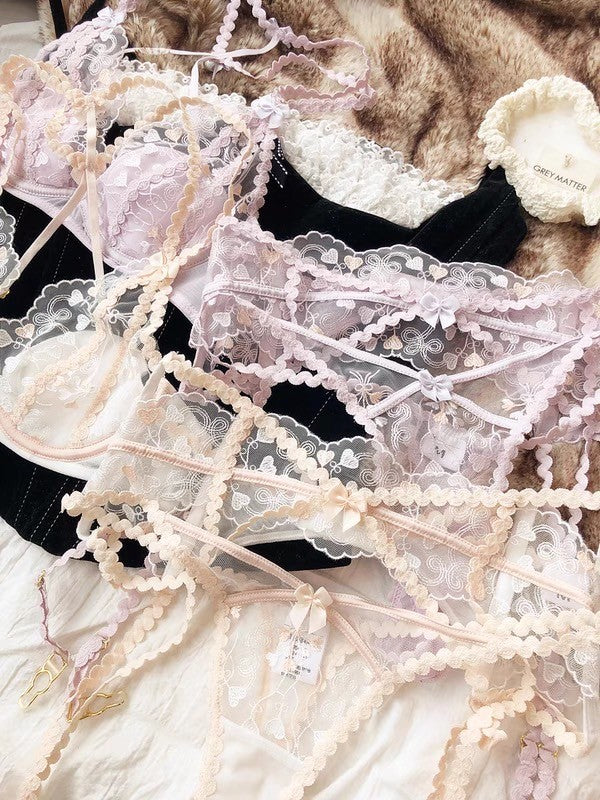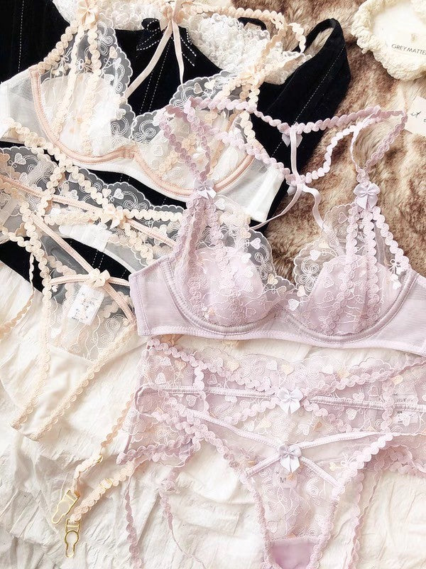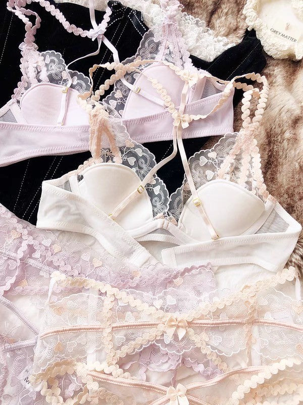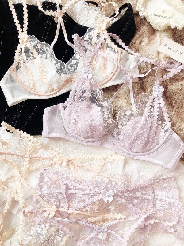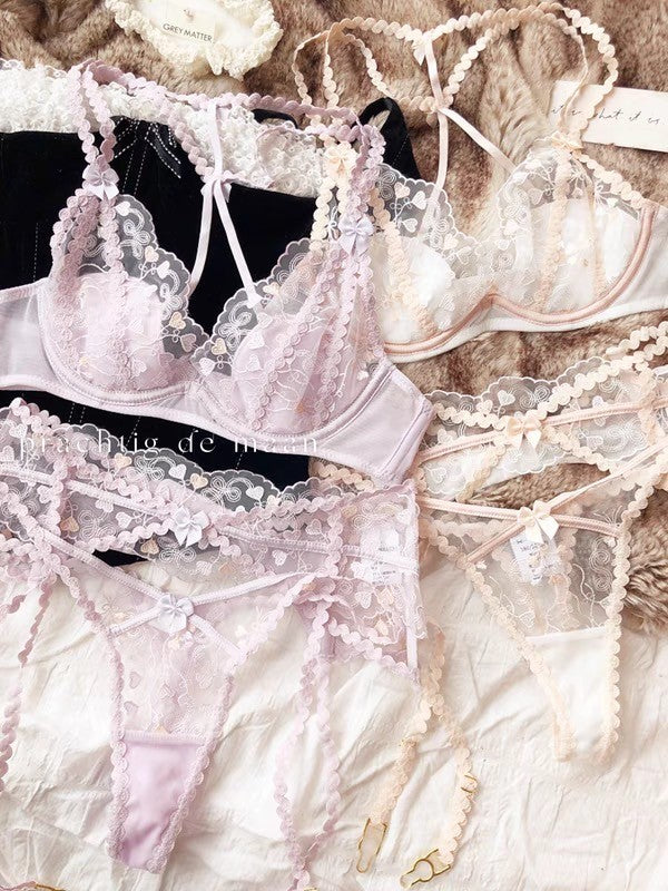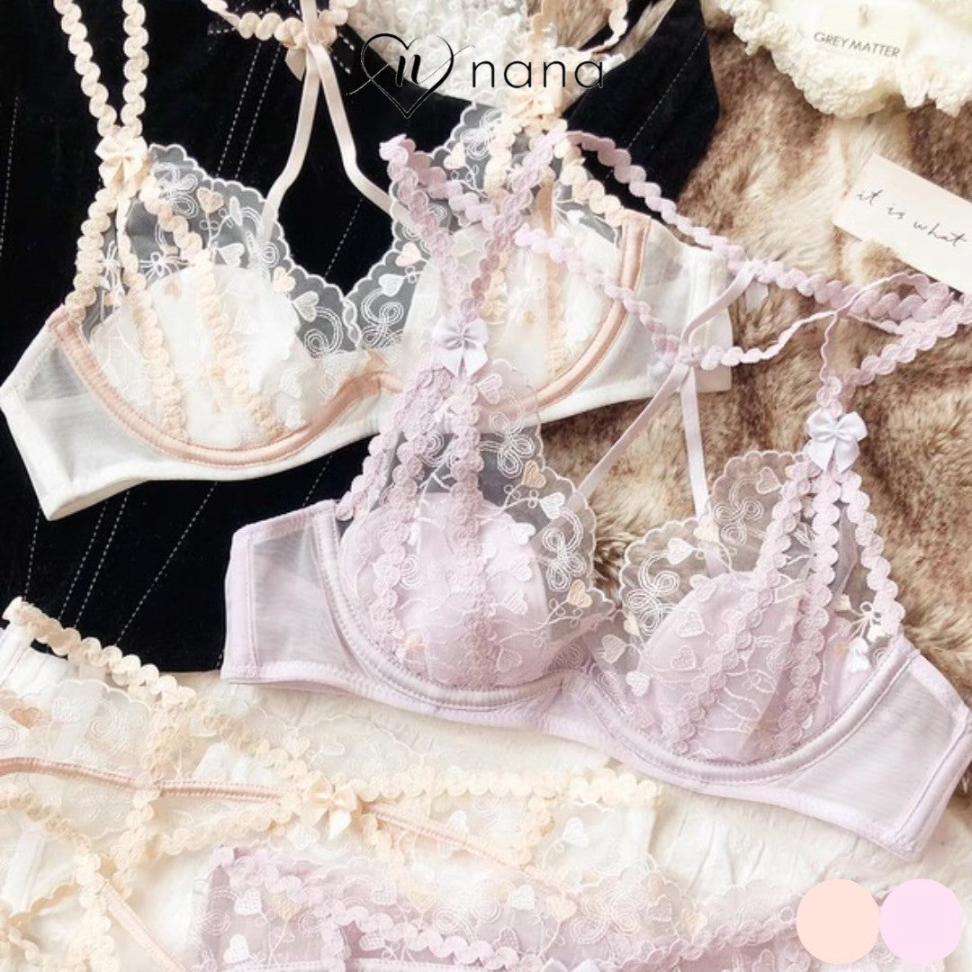 【11/14新作】プチハートブラ&ショーツセット(全2色) 0103NA1124:セクシー シースルー ナイトブラ