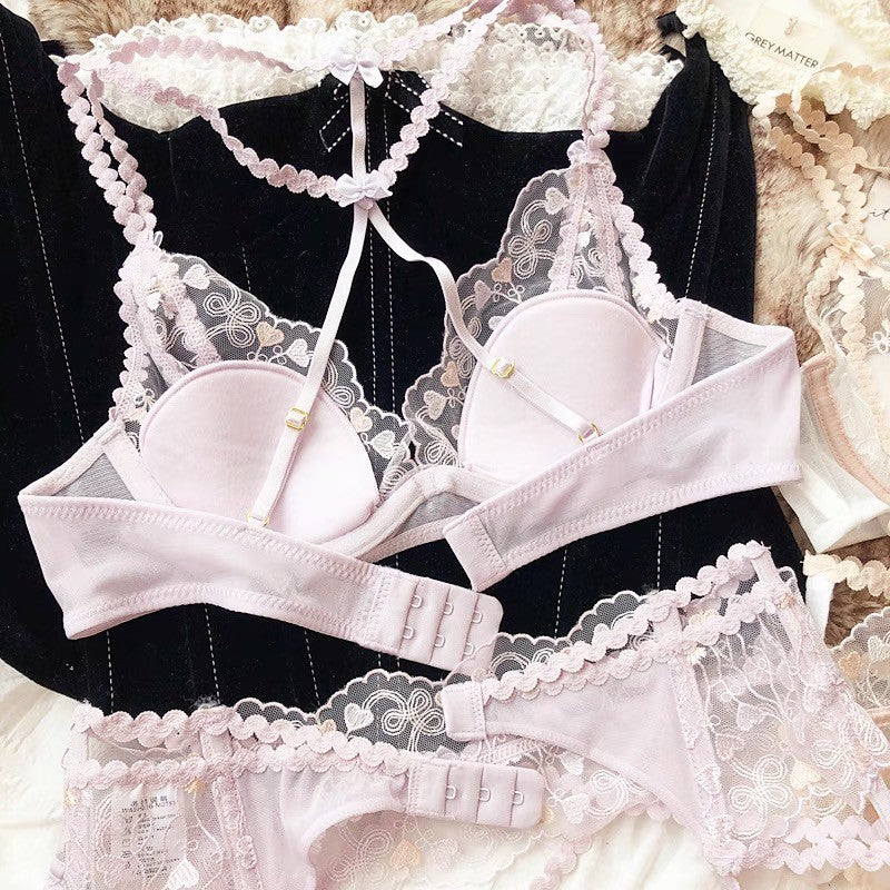 小さなハートがたくさん散りばめられたキュートなランジェリー♡バックスタイルやショーツなどこだわりの詰まった珍しいデザインで、セクシーさも兼ね備えています。