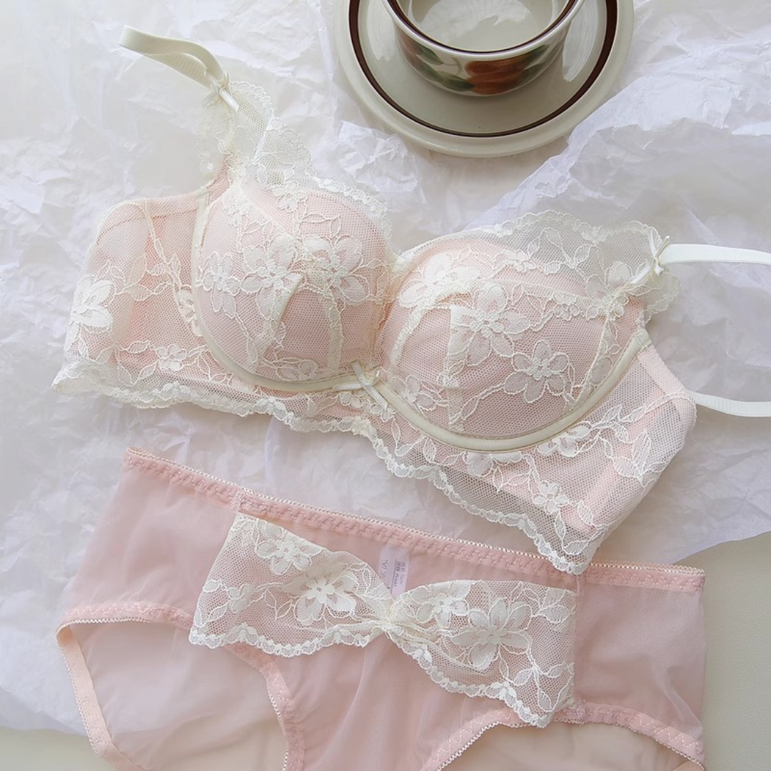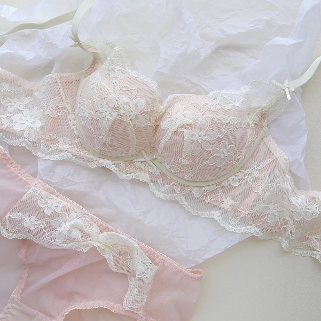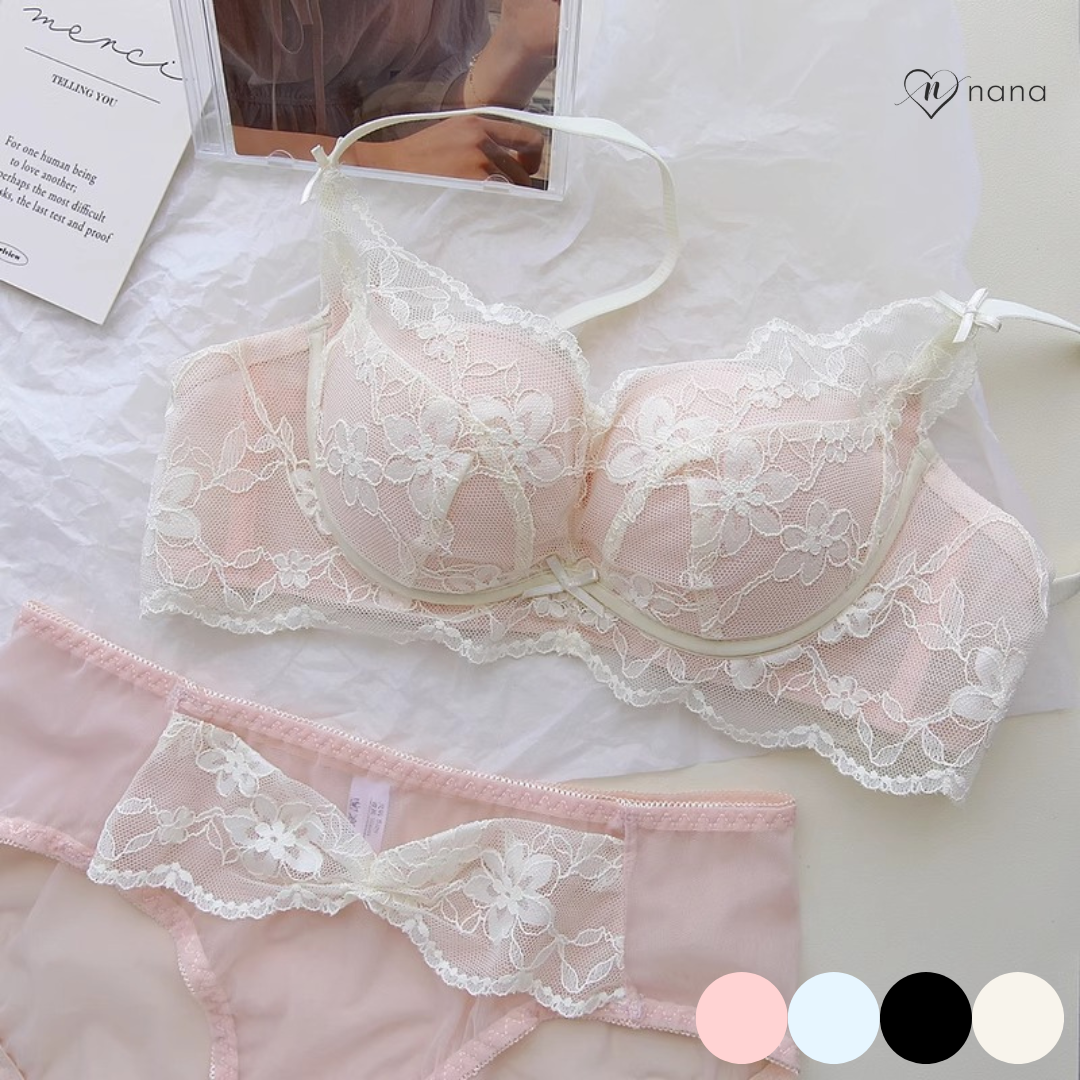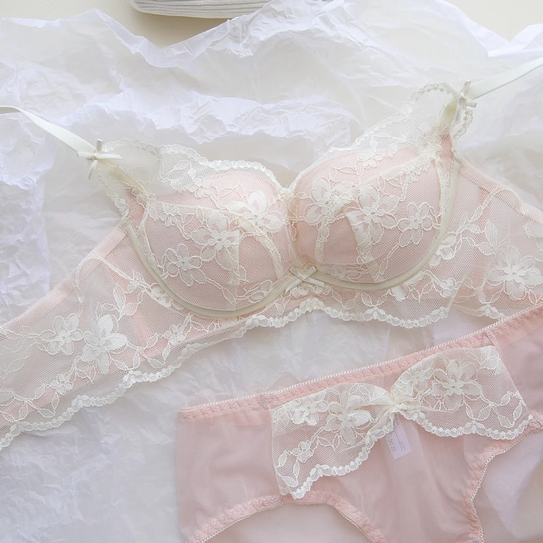 フラワーレースブラ&ショーツセット(全4色)0106NA0625:レース フェミニン 立体カップ