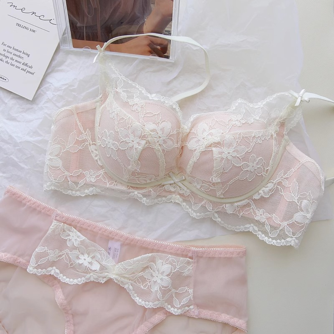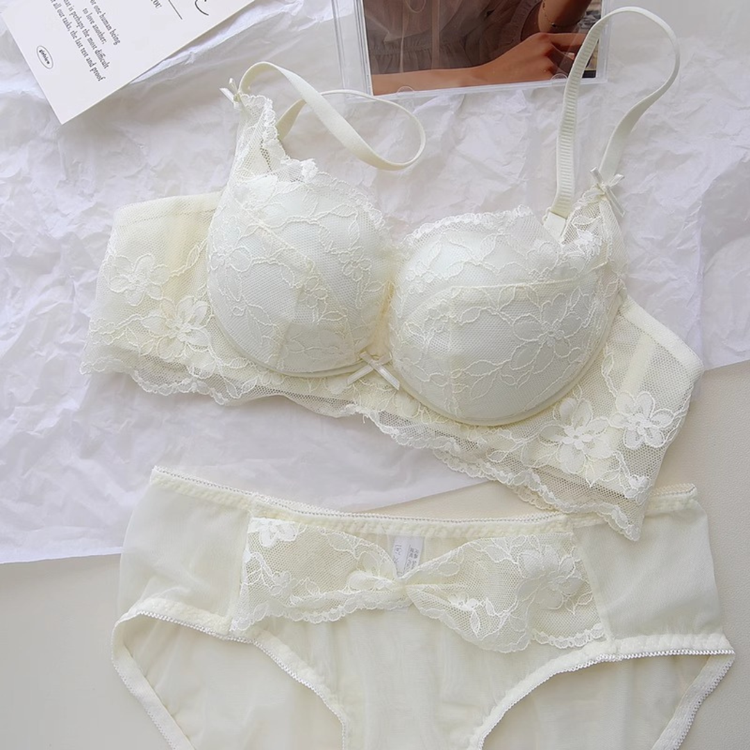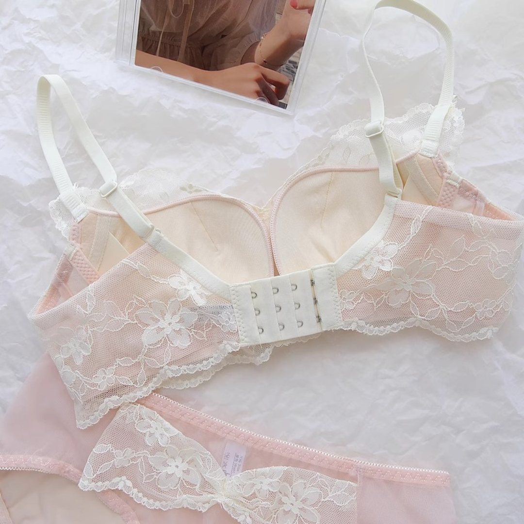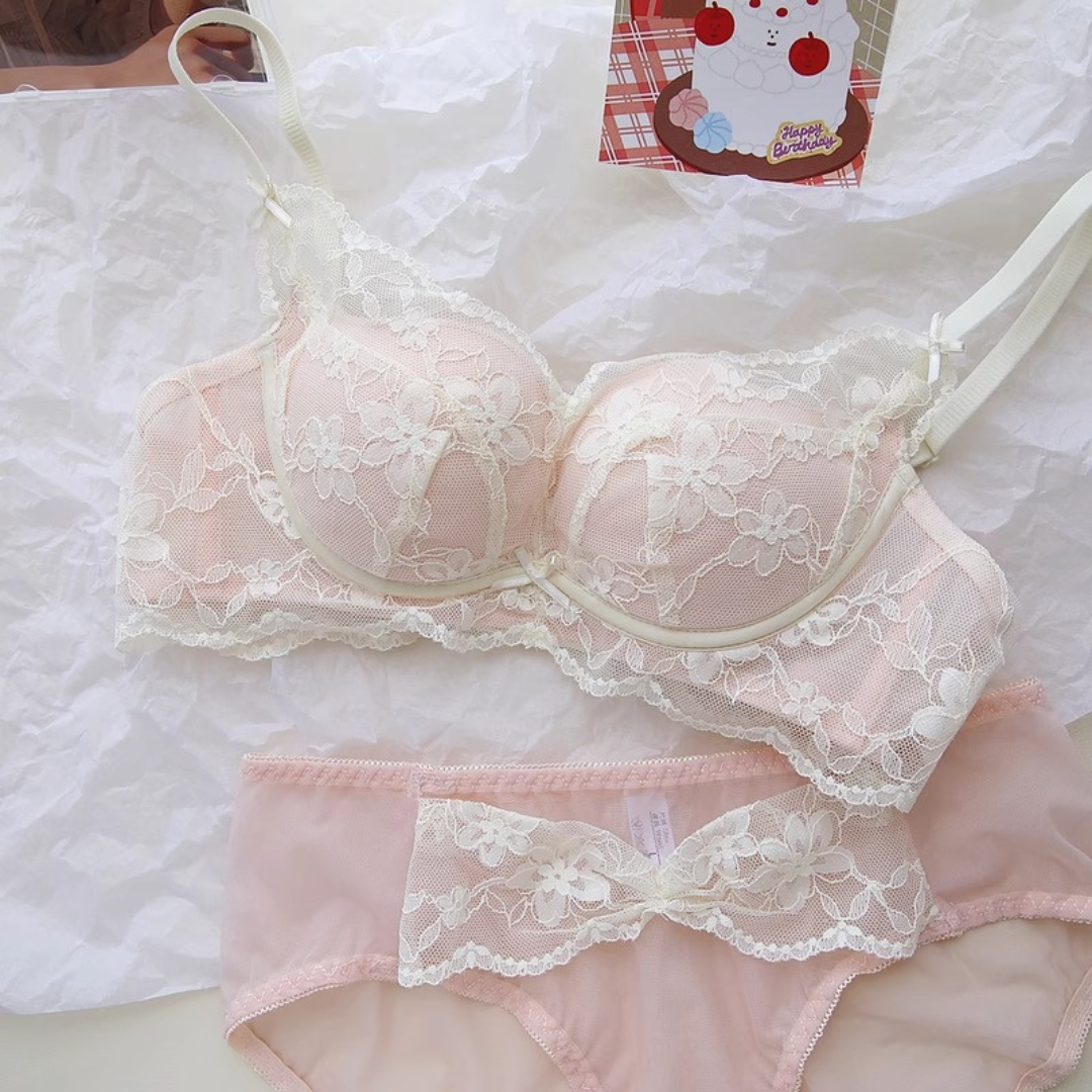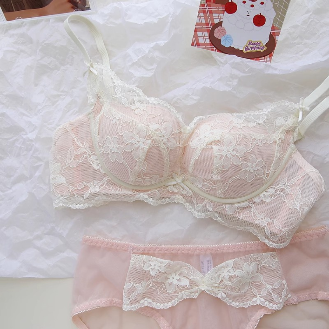 フラワーレースブラ&ショーツセット(全4色)0106NA0625:レース フェミニン 立体カップ