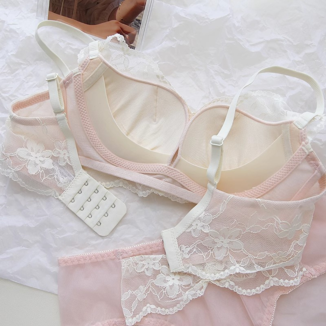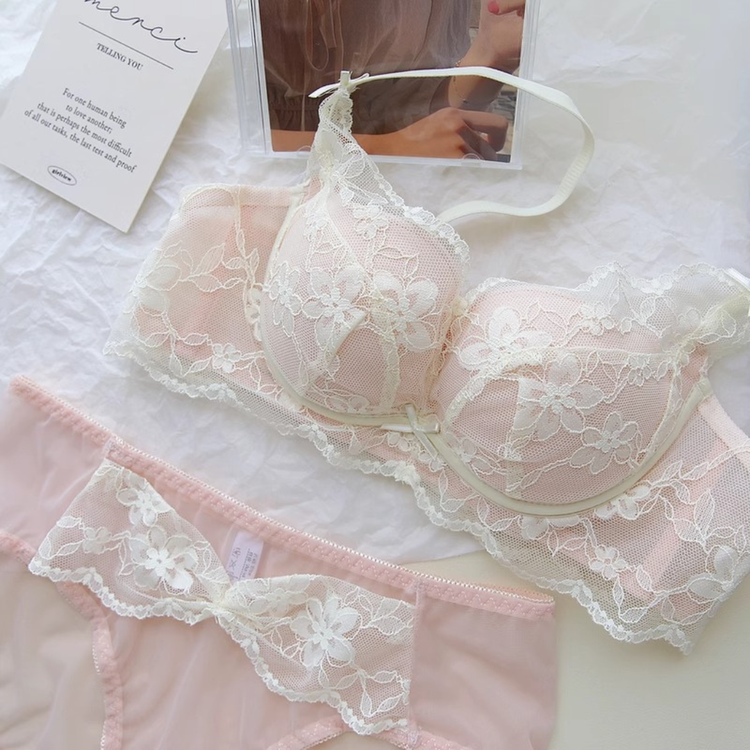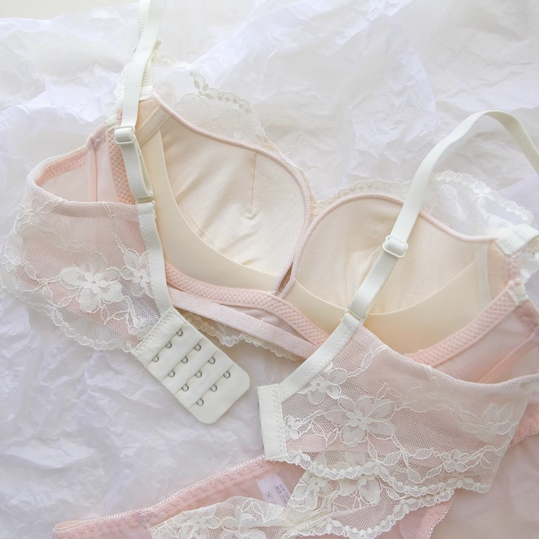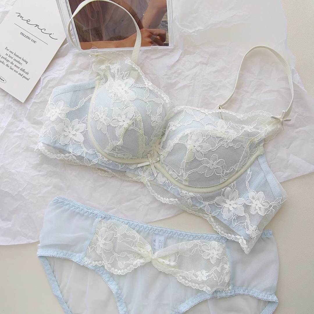フラワーレースブラ&ショーツセット(全4色)0106NA0625:レース フェミニン 立体カップ