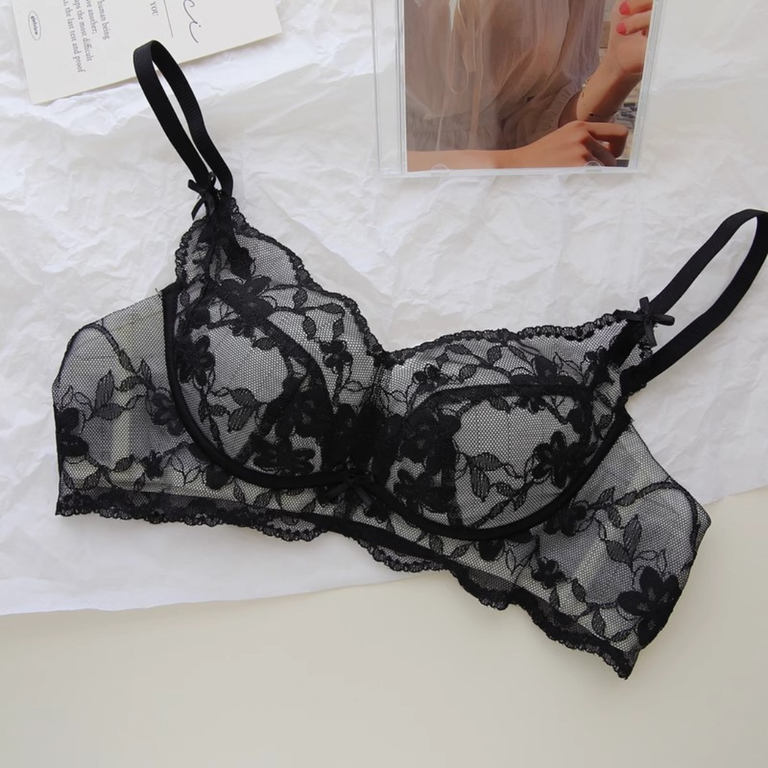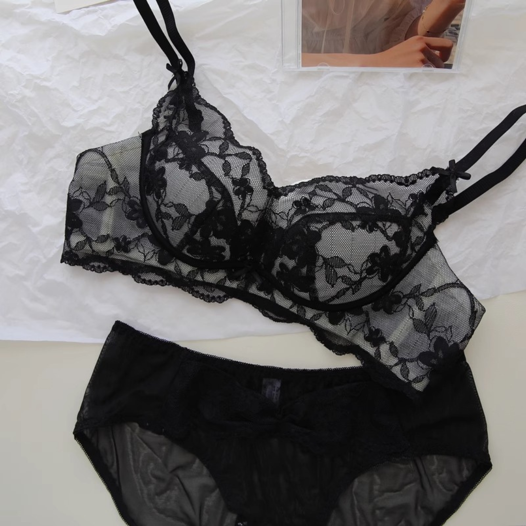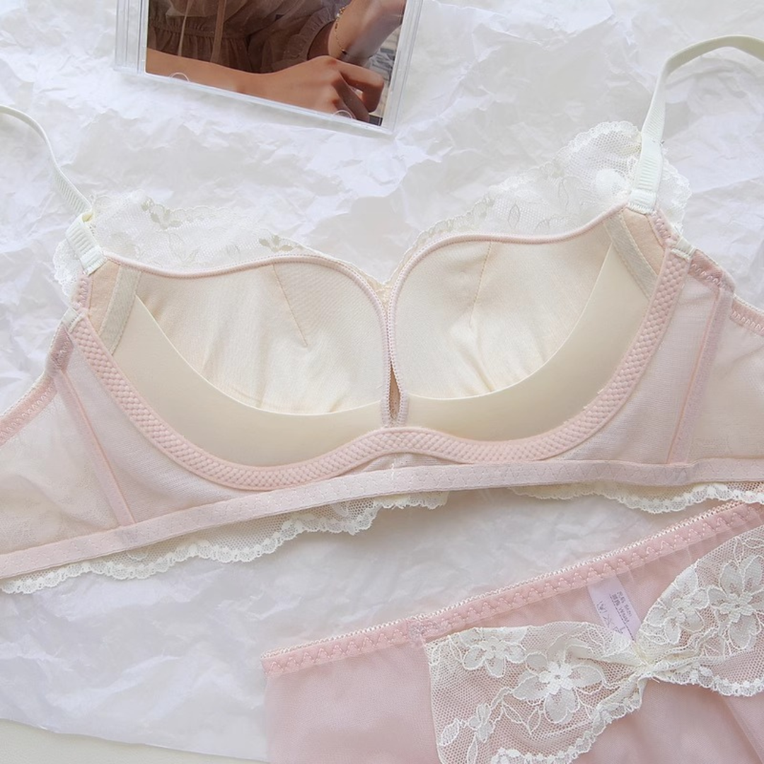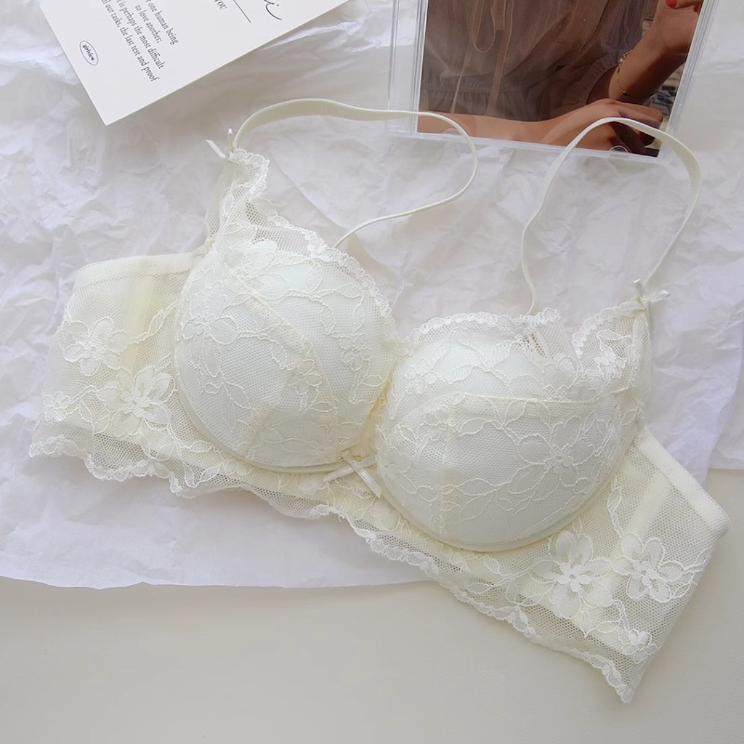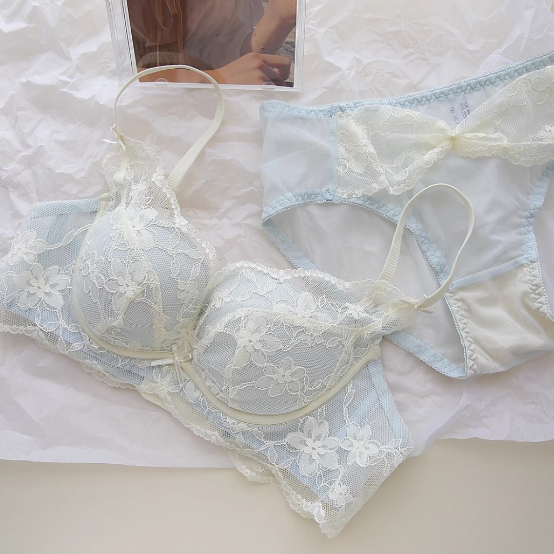 フラワーレースブラ&ショーツセット(全4色)0106NA0625:レース フェミニン 立体カップ