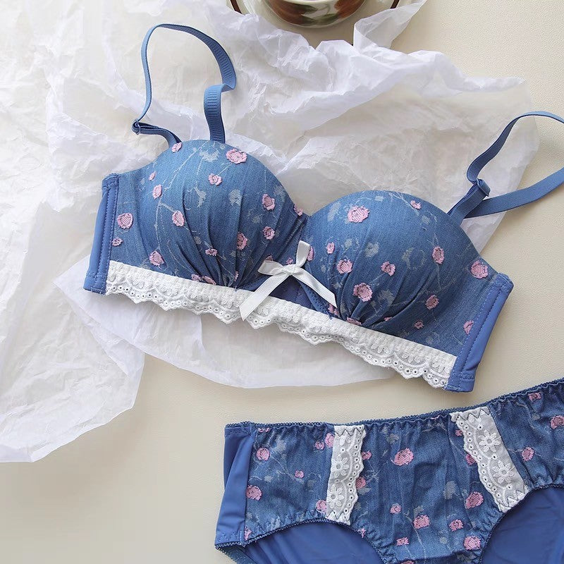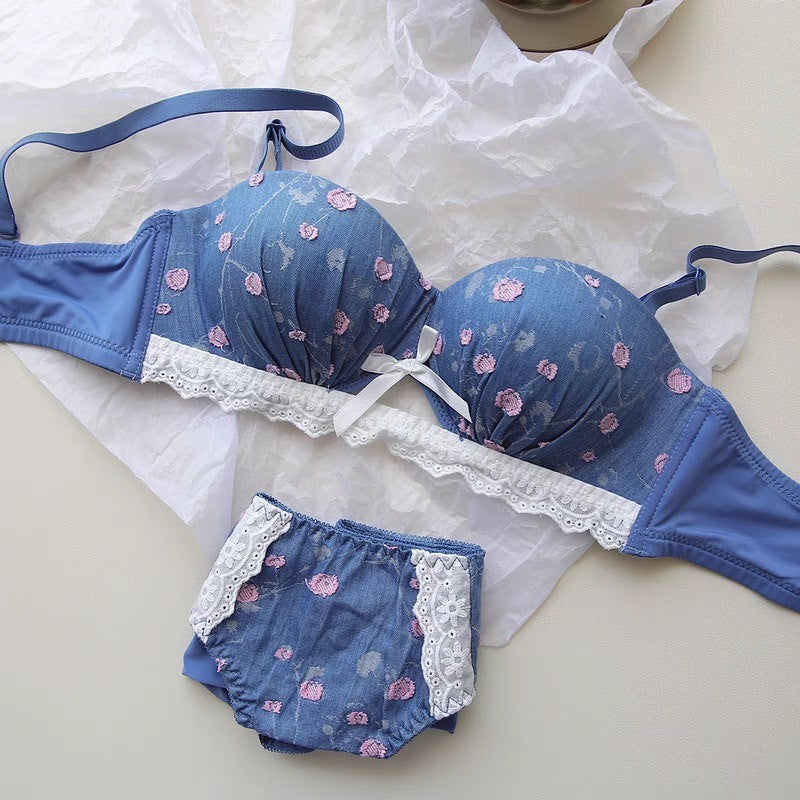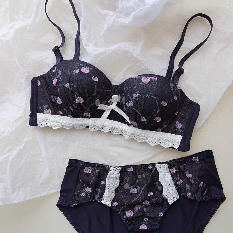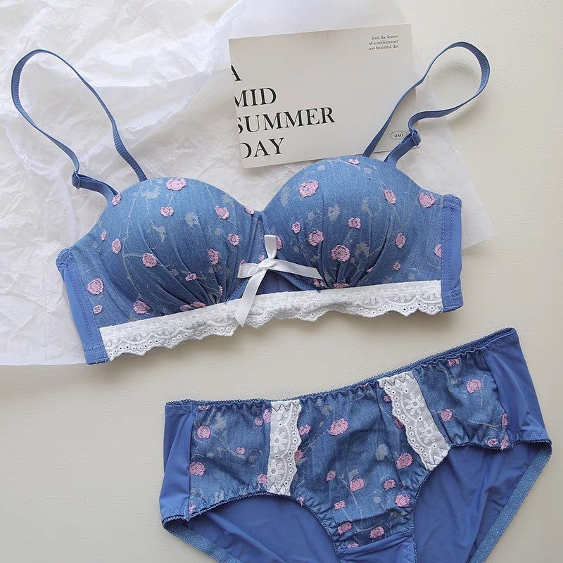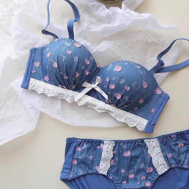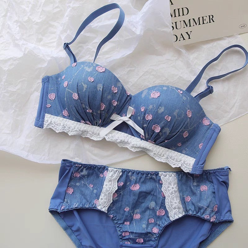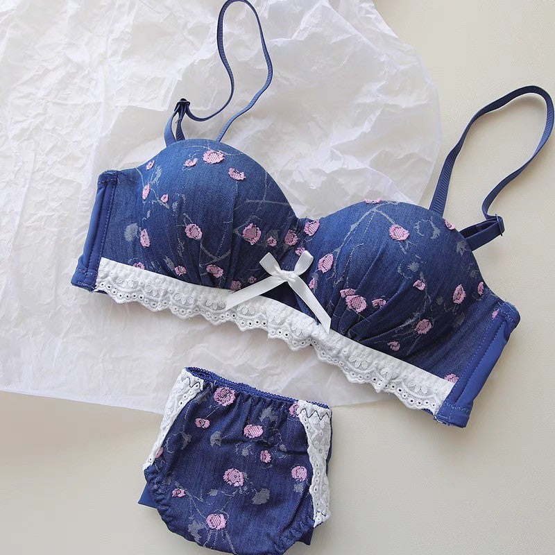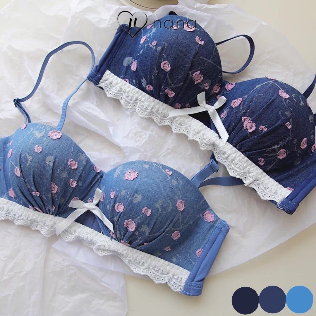 【11/21新作】デニムフラワーブラ&ショーツセット(全3色) 0105NA1124:盛れる パット厚め カジュアル