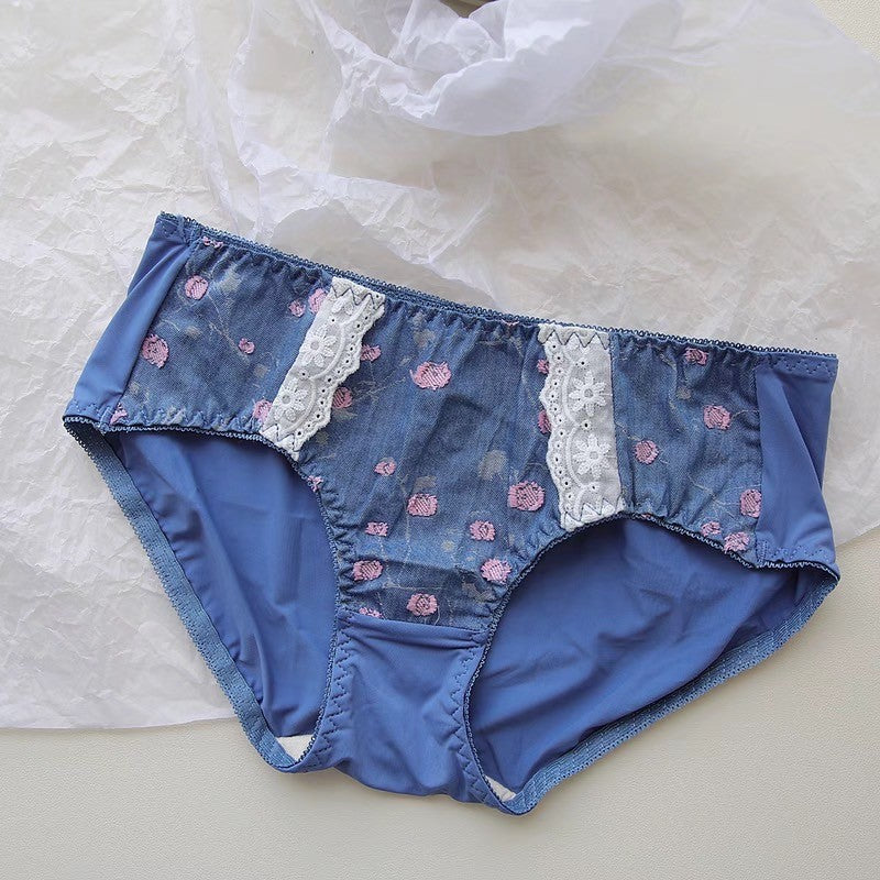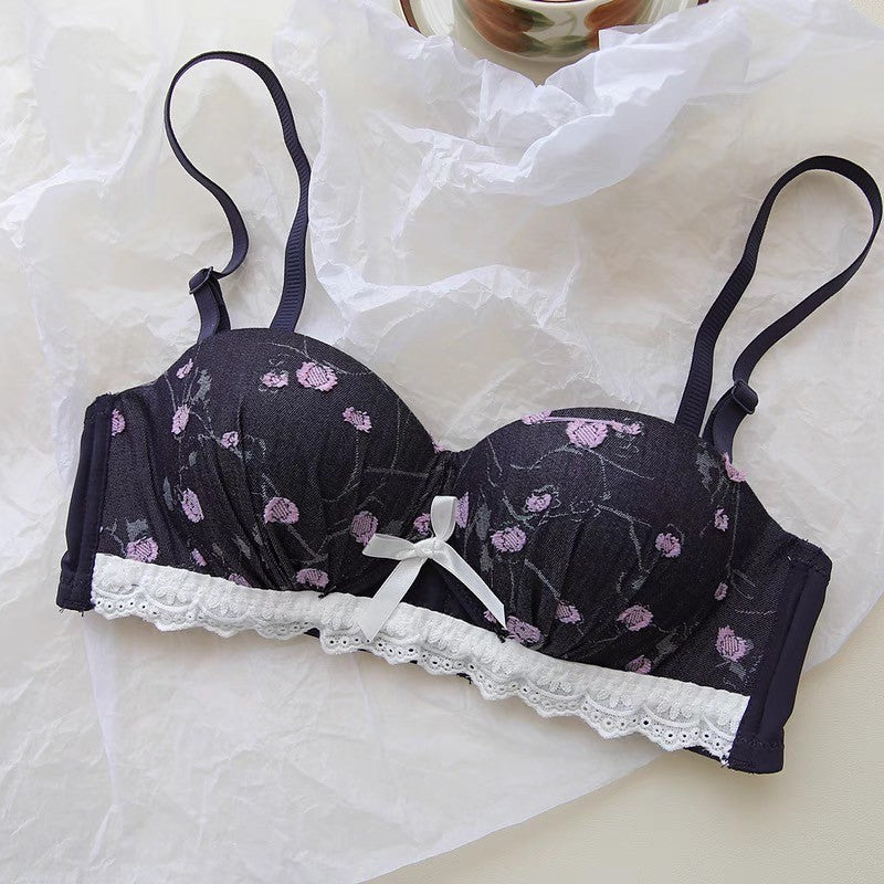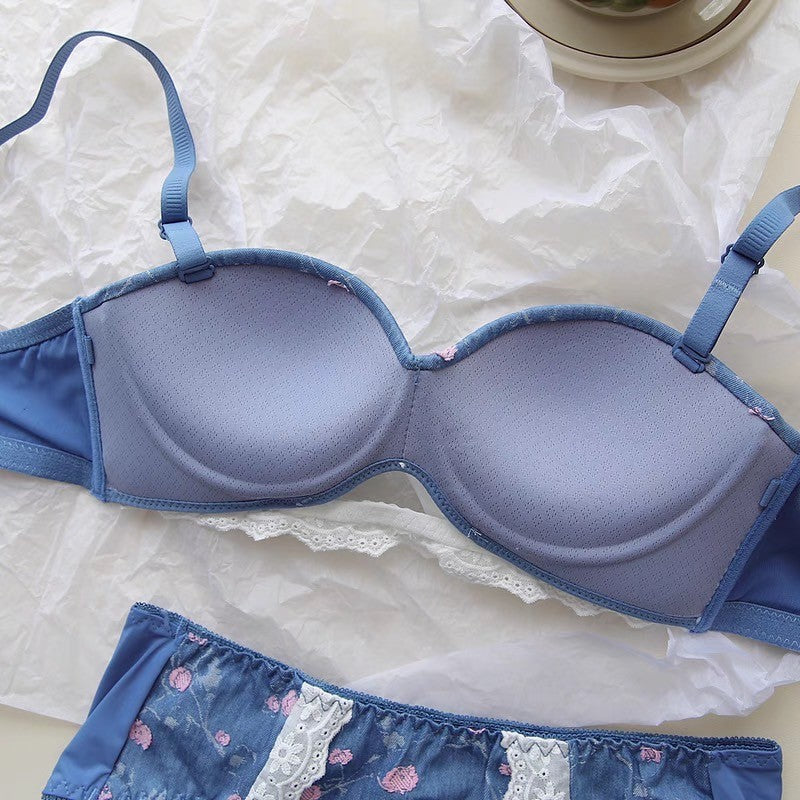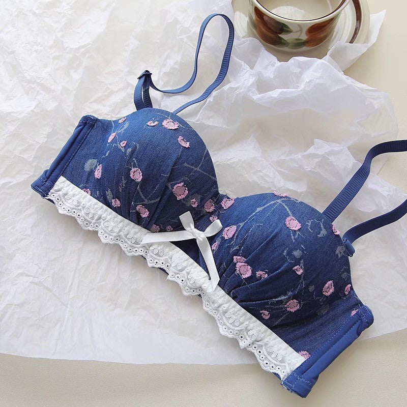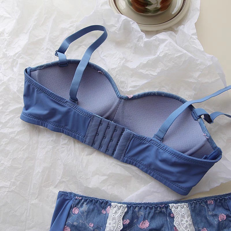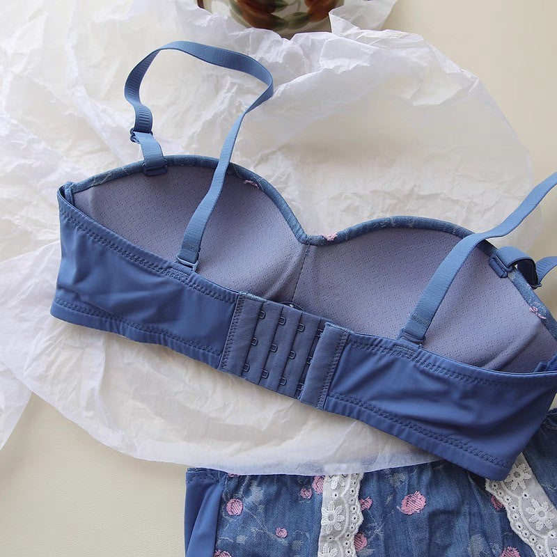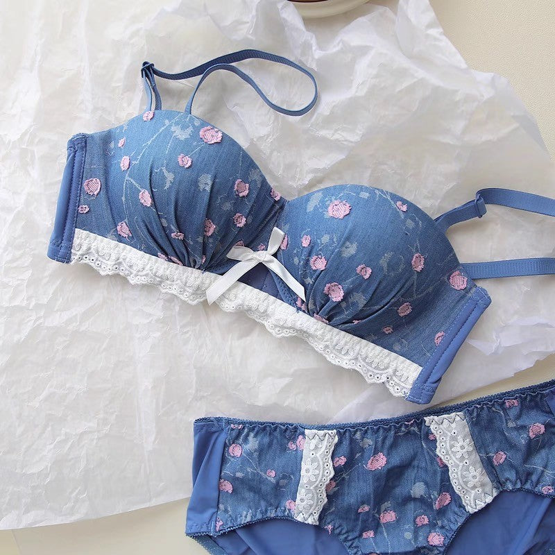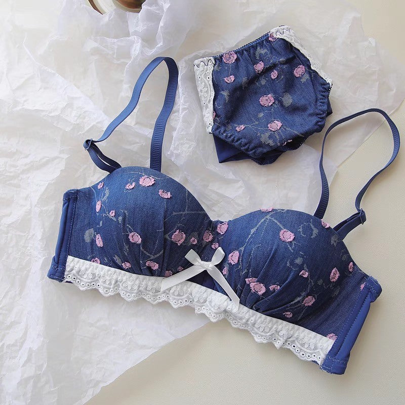 【11/21新作】デニムフラワーブラ&ショーツセット(全3色) 0105NA1124:盛れる パット厚め カジュアル