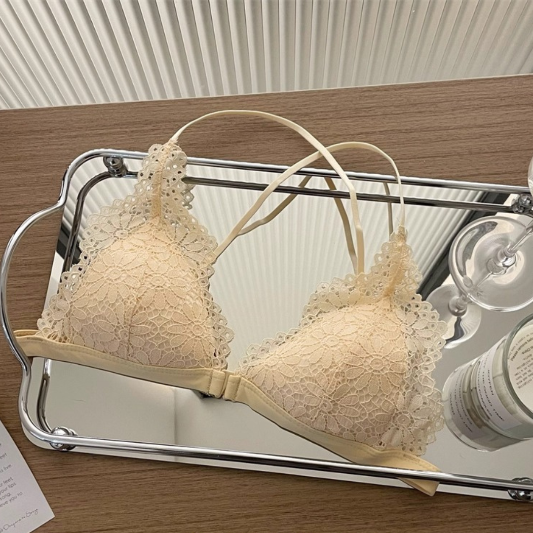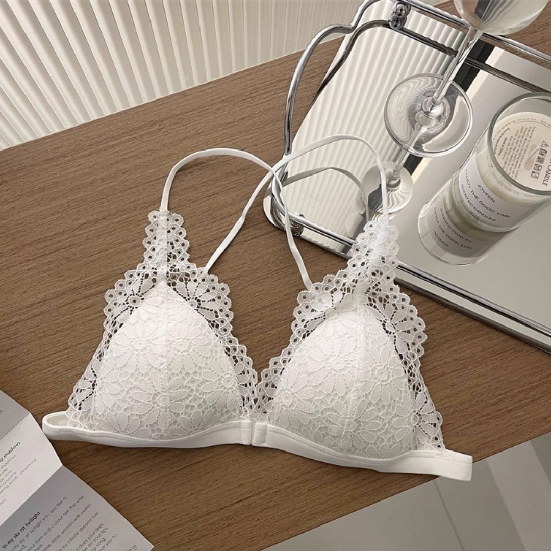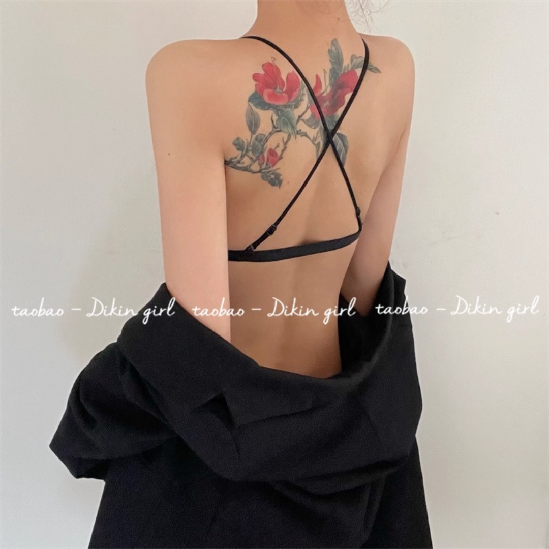 前ホック仕様で着脱もラクラク、華奢なクロスストラップが背中を美しく魅せてくれます。軽やかな超薄型デザインで通気性抜群!