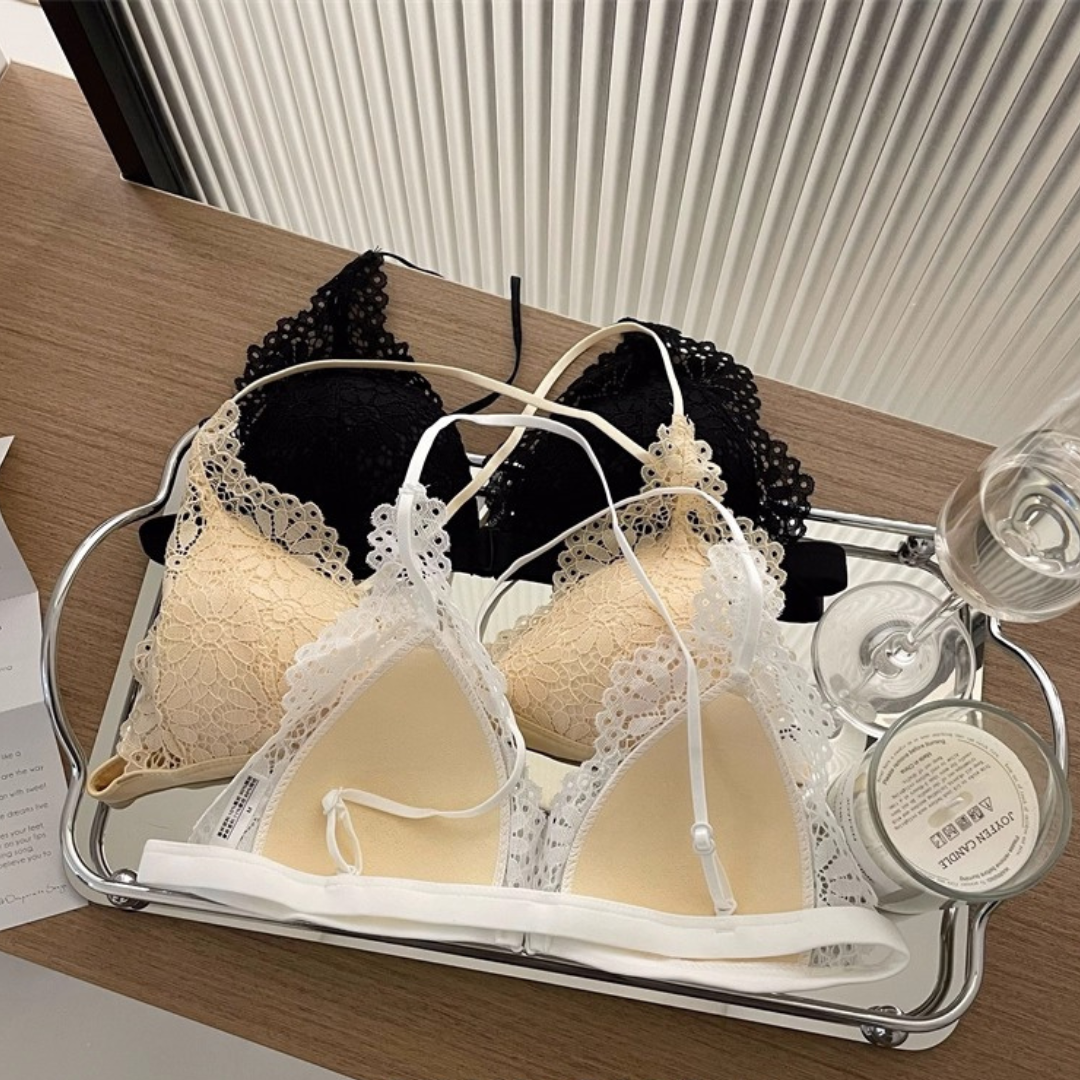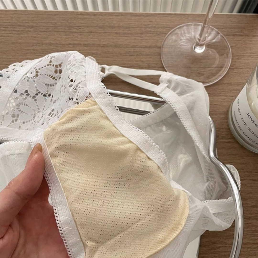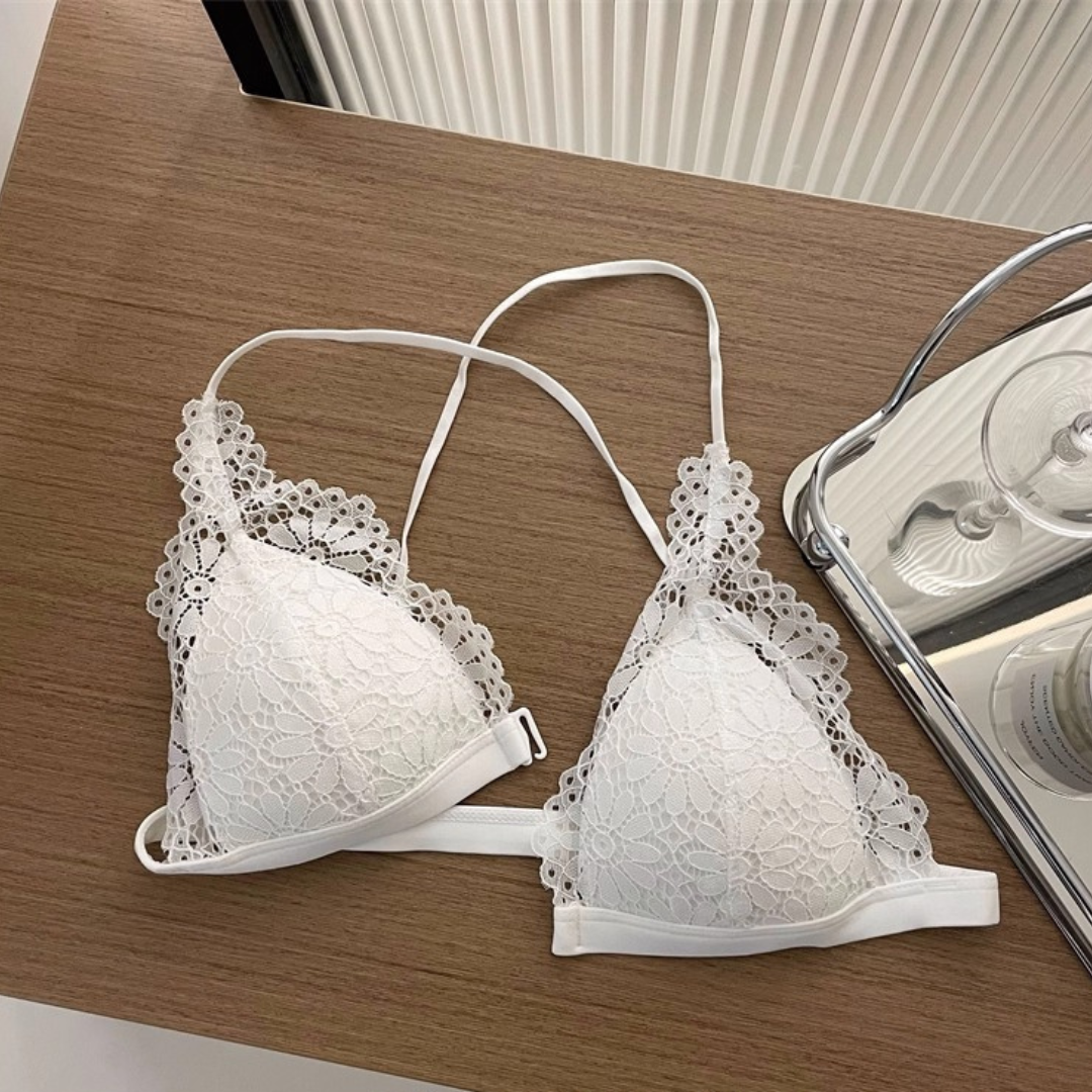 前ホック仕様で着脱もラクラク、華奢なクロスストラップが背中を美しく魅せてくれます。軽やかな超薄型デザインで通気性抜群!