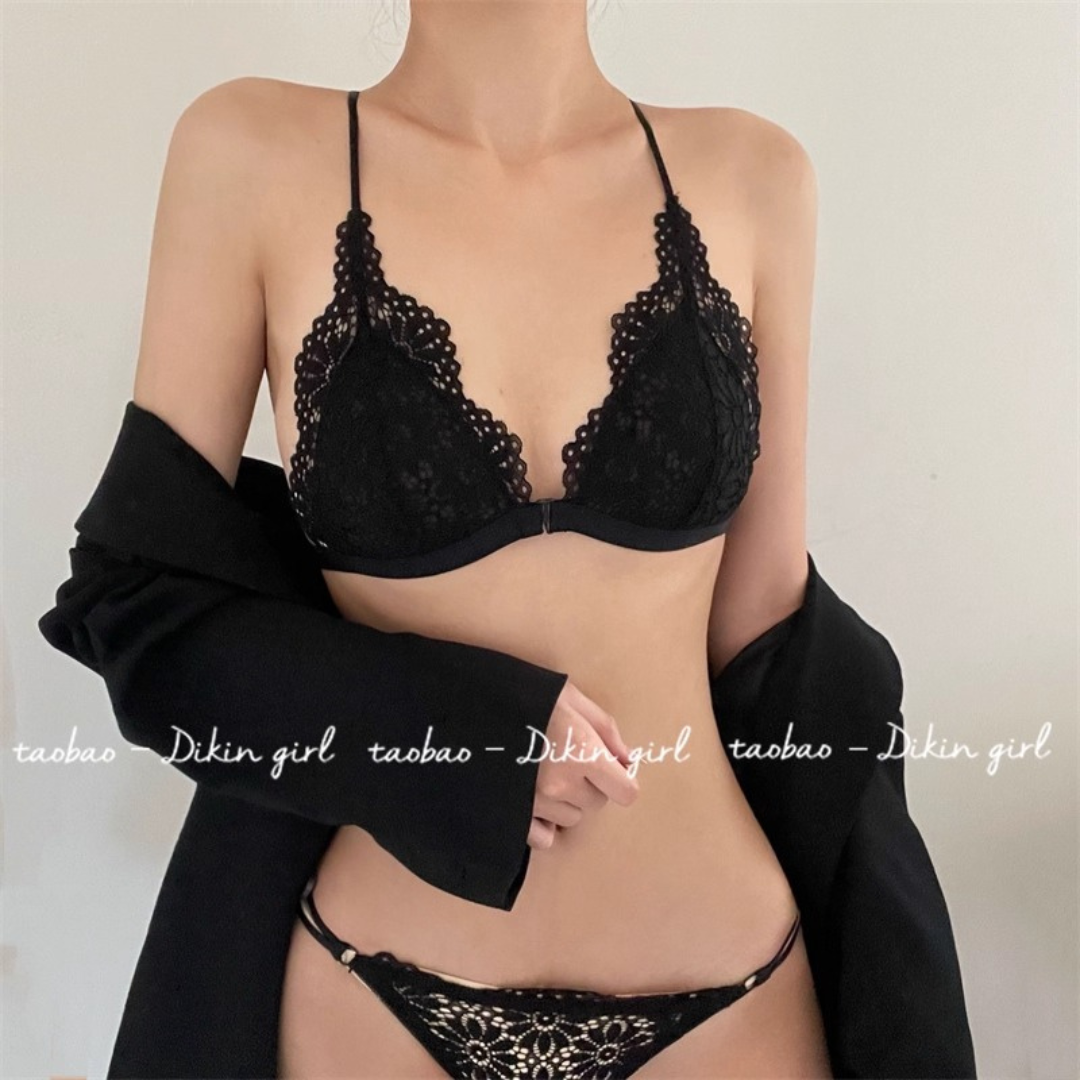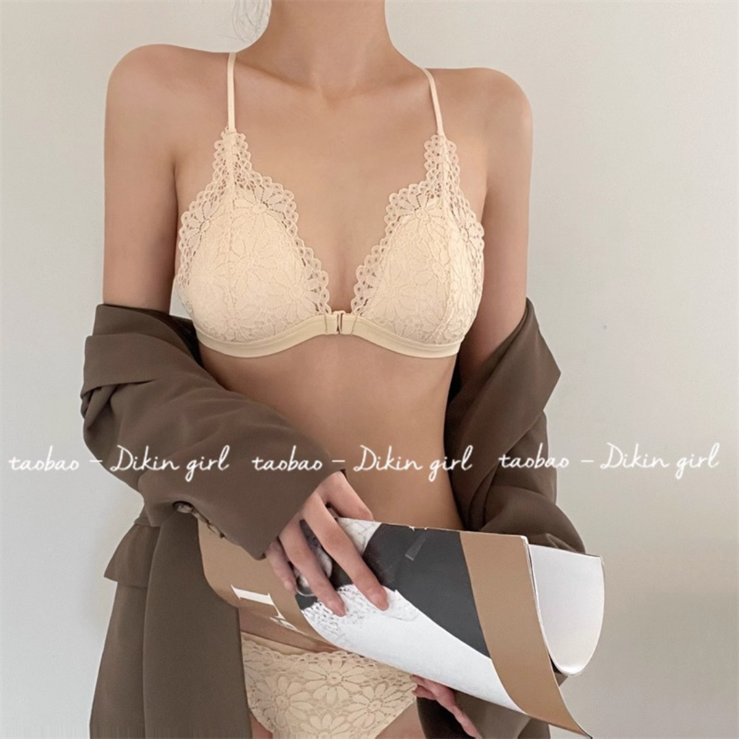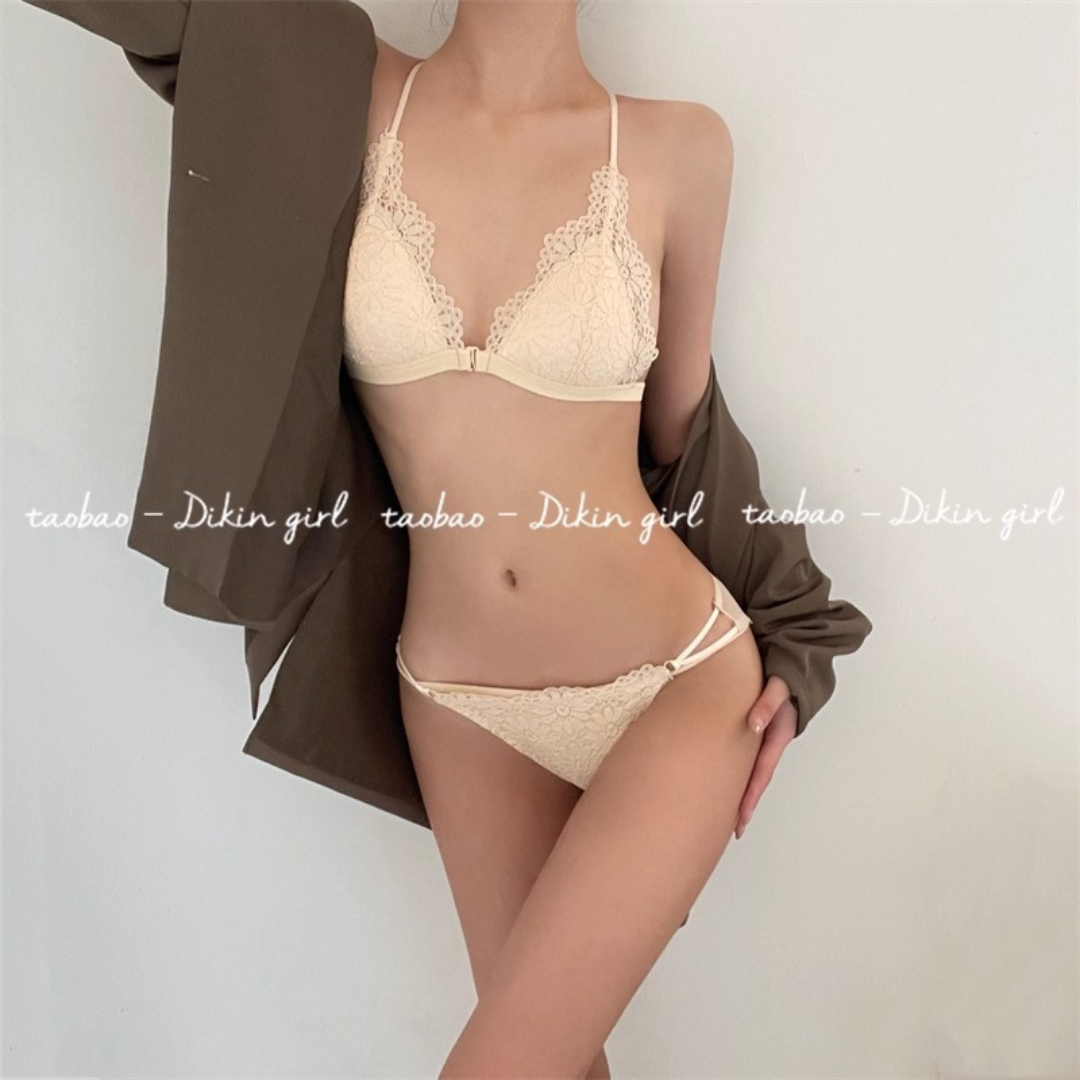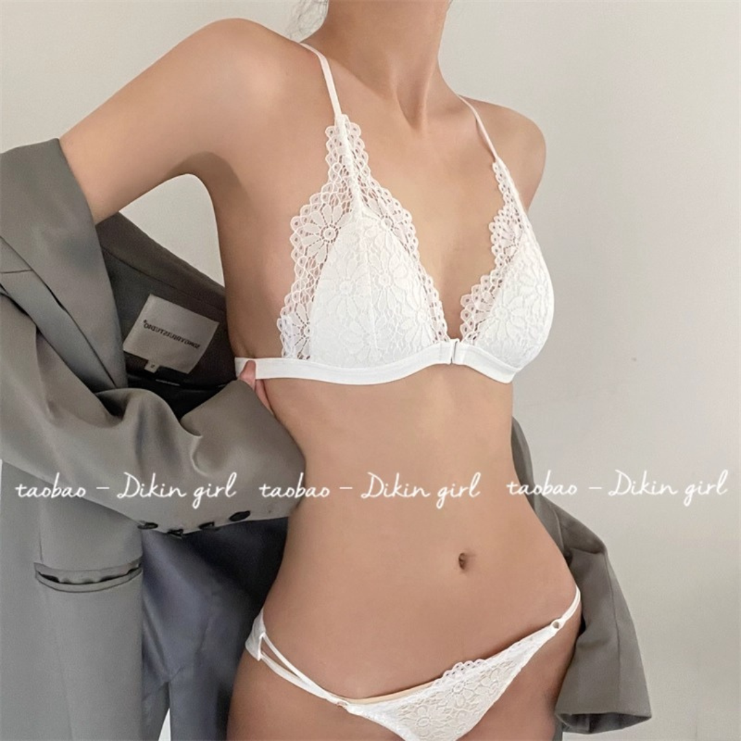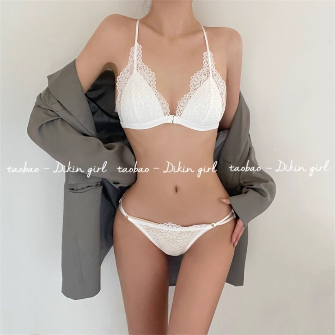 【10/9新作】フラワーレース三角カップブラレット&ショーツセット(全3色)0201NA1025:前ホック 薄型三角カップ クロスストラップ